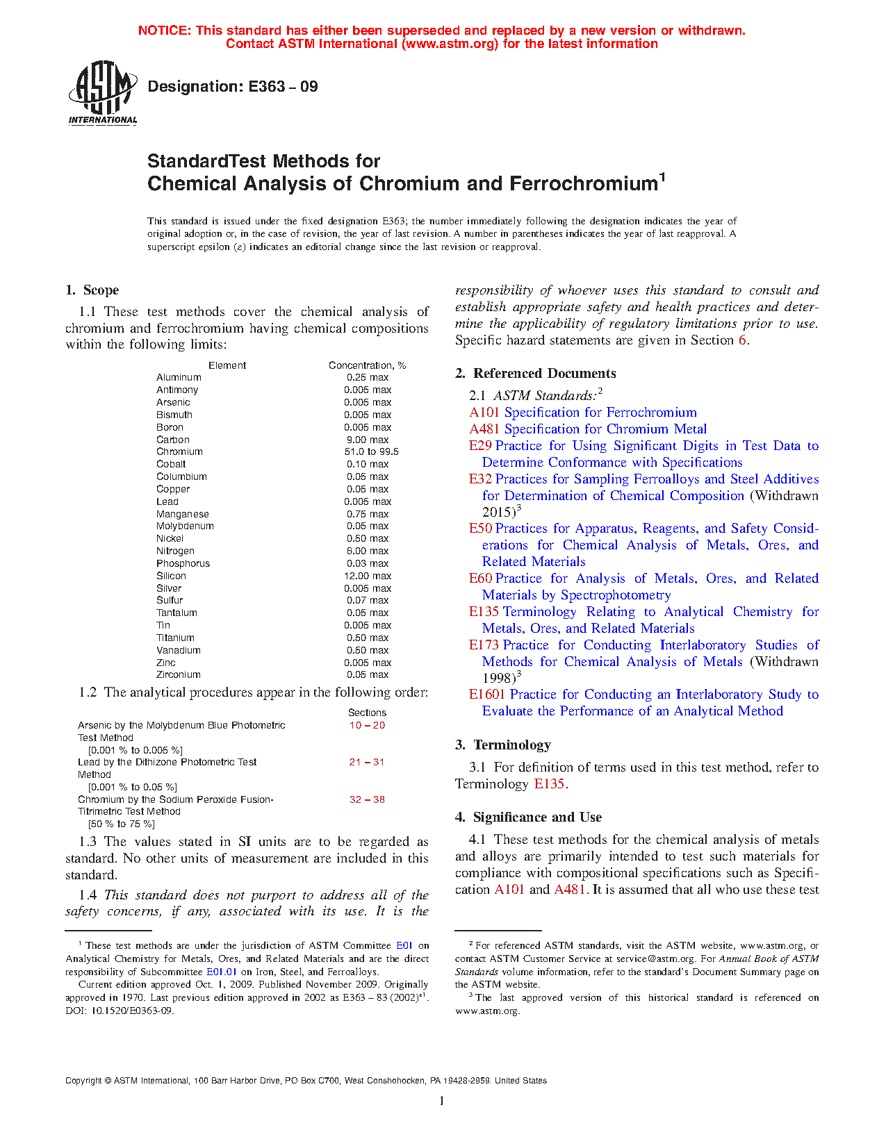 | Chromium by the Sodium Peroxide Fusion-Titrimetric Method | 31-37 |