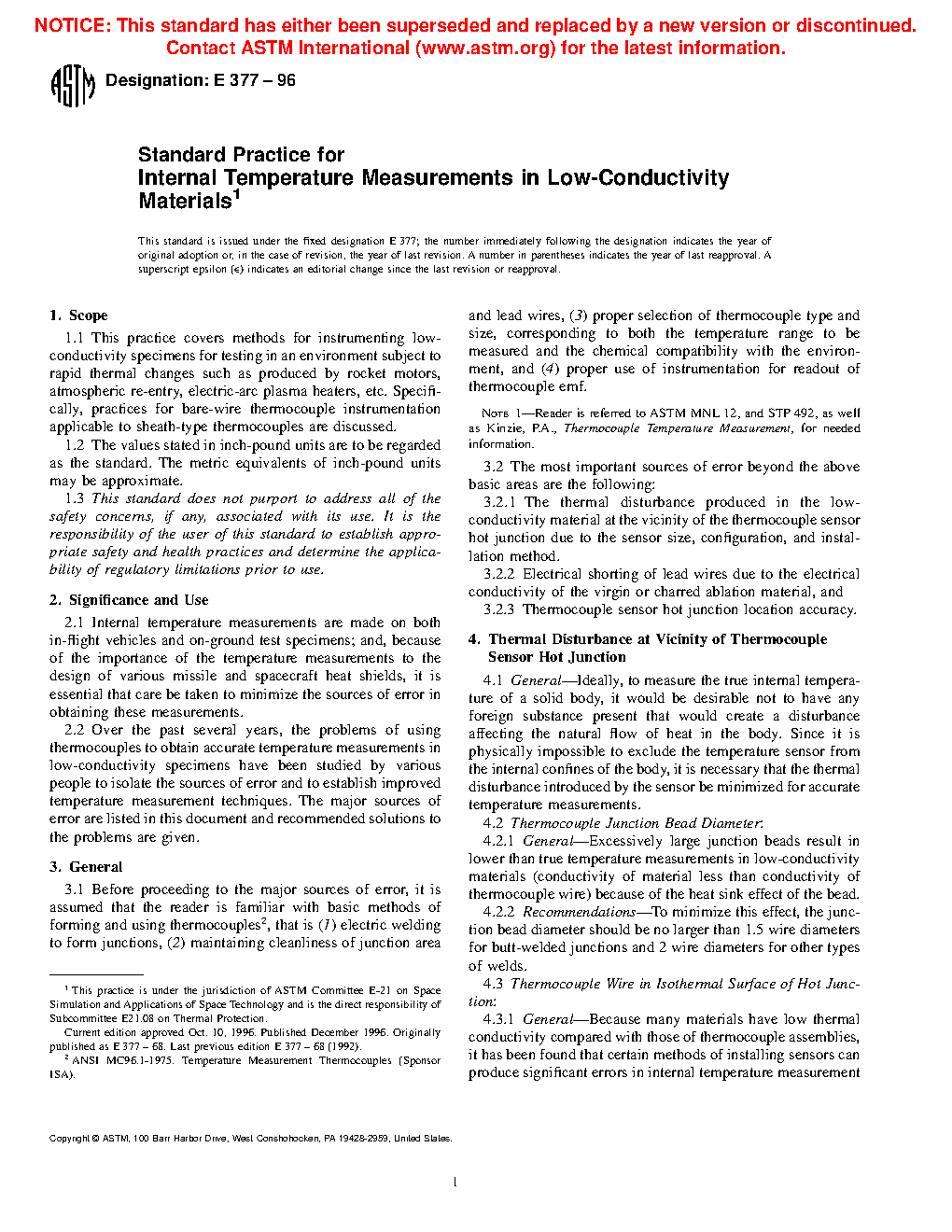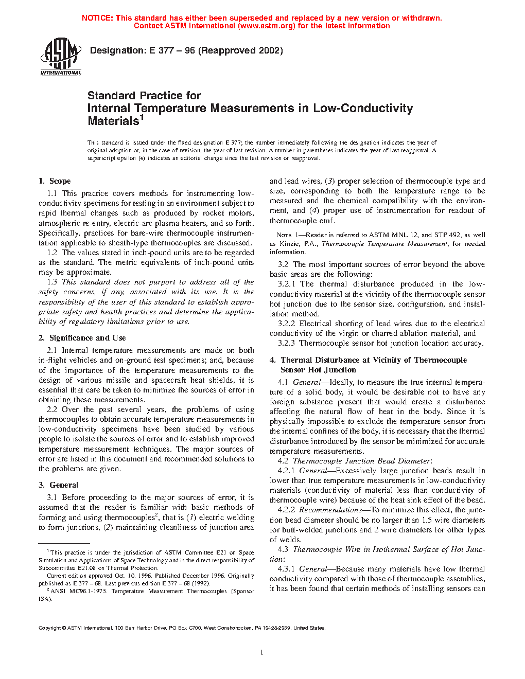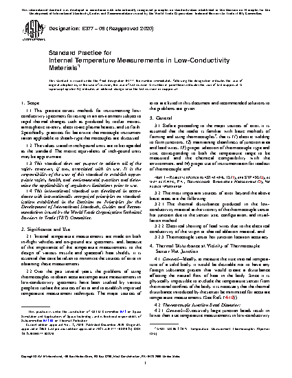 2.2 Over the past several years, the problems of using thermocouples to obtain accurate temperature measurements in low-conductivity specimens have been studied by various people to isolate the sources of error and to establish improved temperature measurement techniques. The major sources of error are listed in this document and recommended solutions to the problems are given.
