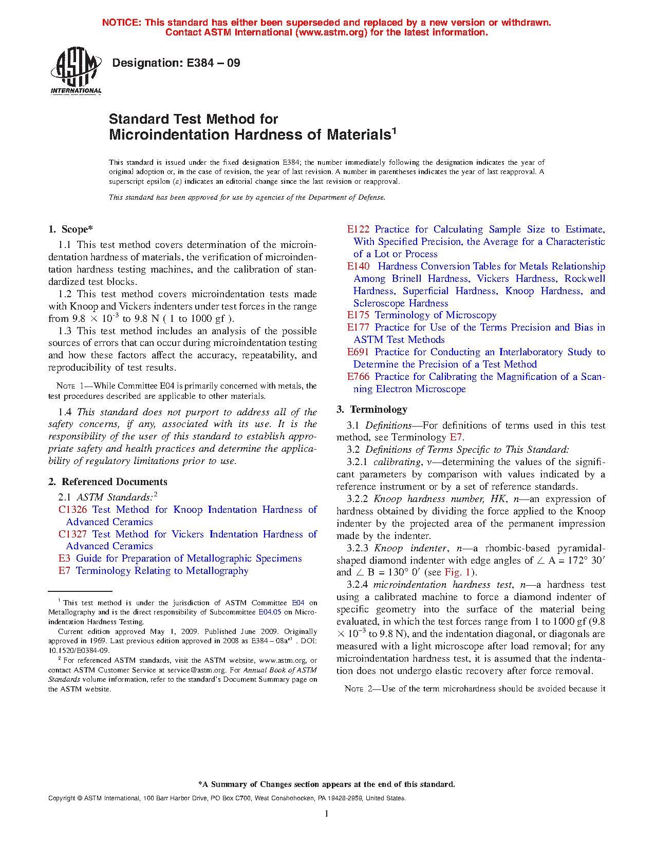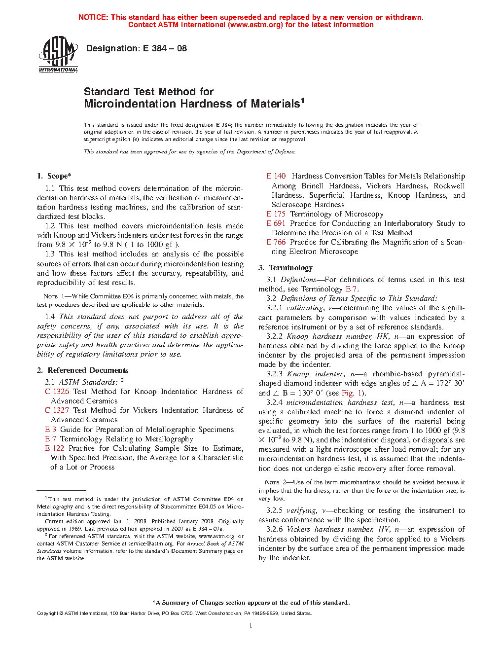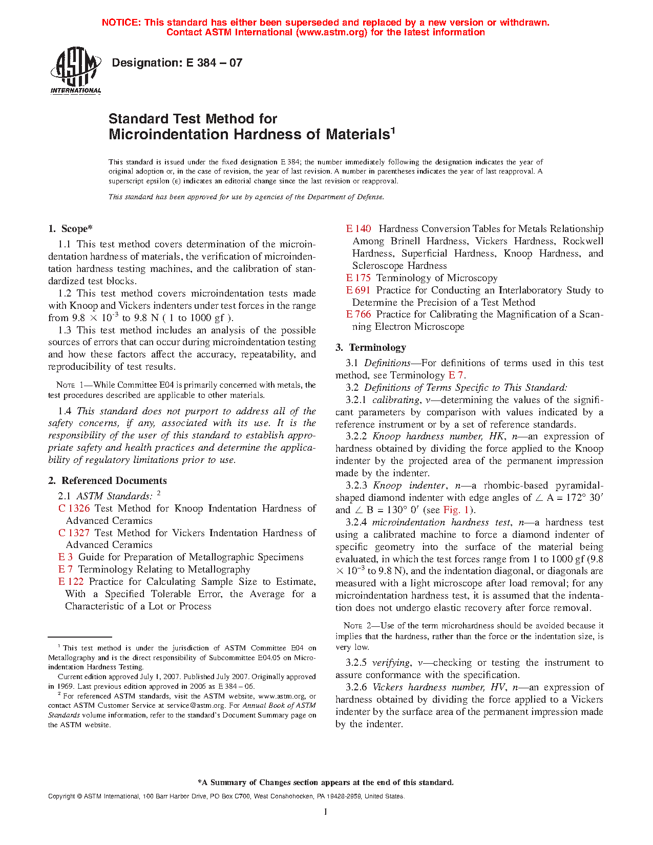 1.1 This test method covers determination of the microindentation hardness of materials, the verification of microindentation hardness testing machines, and the calibration of standardized test blocks.