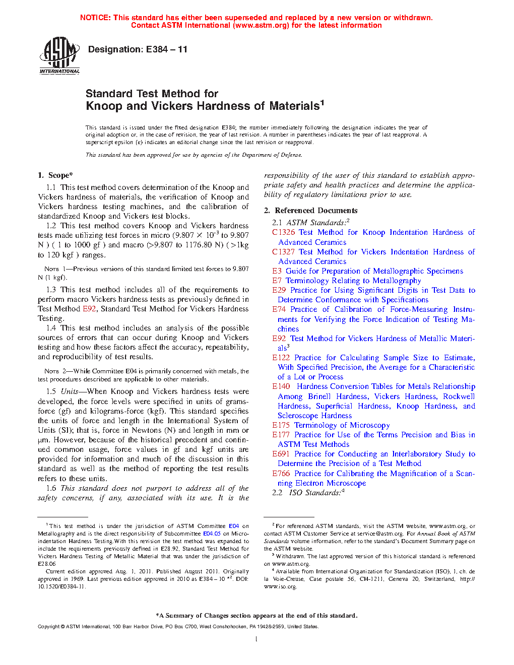 1.3 This test method includes all of the requirements to perform macro Vickers hardness tests as previously defined in Test Method E92, Standard Test Method for Vickers Hardness Testing.