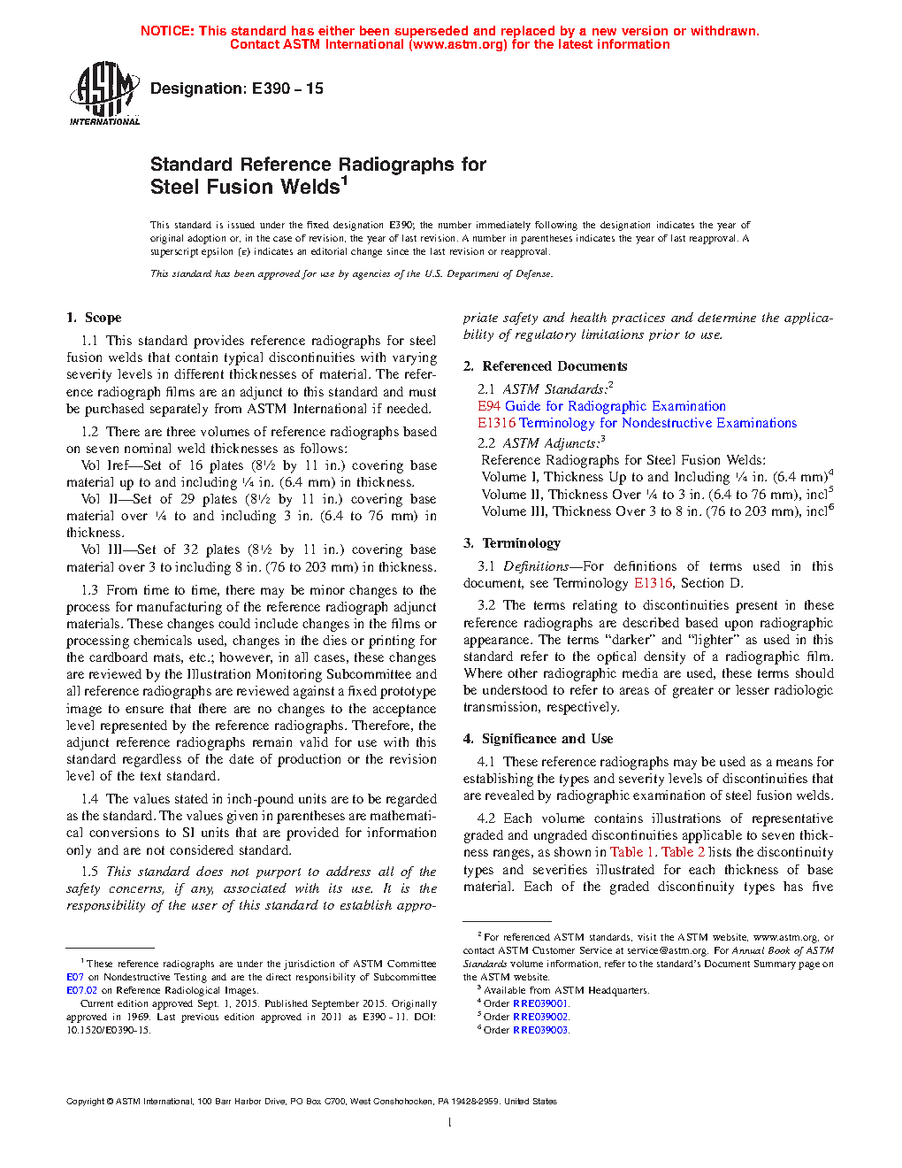 1.2 There are three volumes of reference radiographs based on seven nominal weld thicknesses as follows: