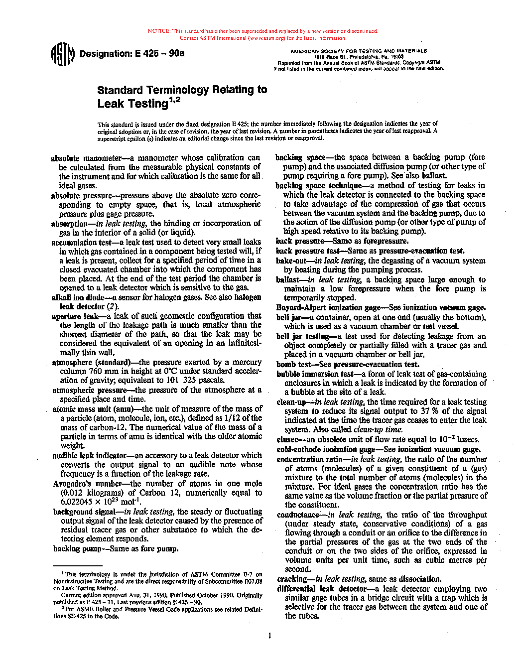 Definitions of Terms Related to Leak Testing (Withdrawn 1991)