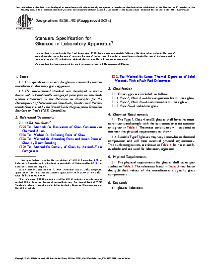 1.1 This specification covers the glasses commonly used to manufacture laboratory glass apparatus.