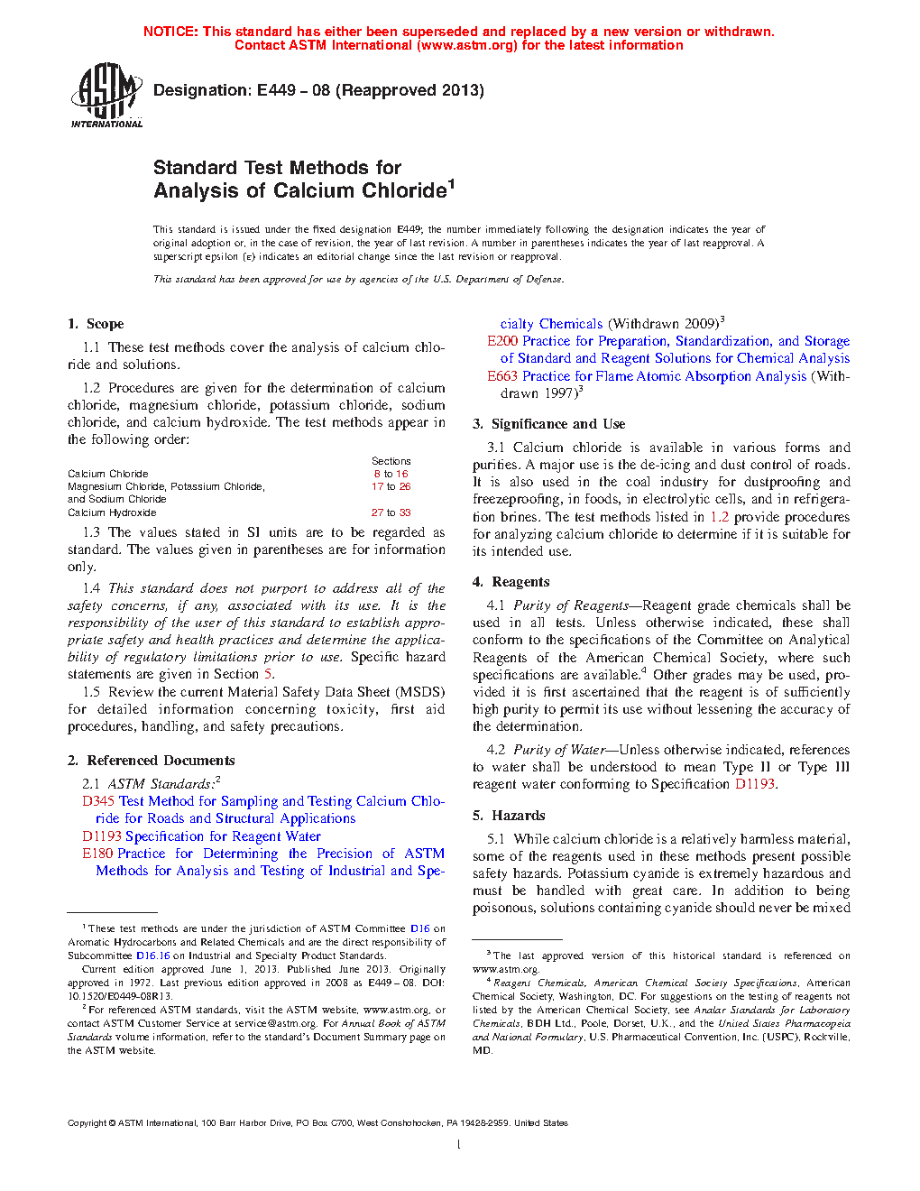 1.2 Procedures are given for the determination of calcium chloride, magnesium chloride, potassium chloride, sodium chloride, and calcium hydroxide. The test methods appear in the following order: