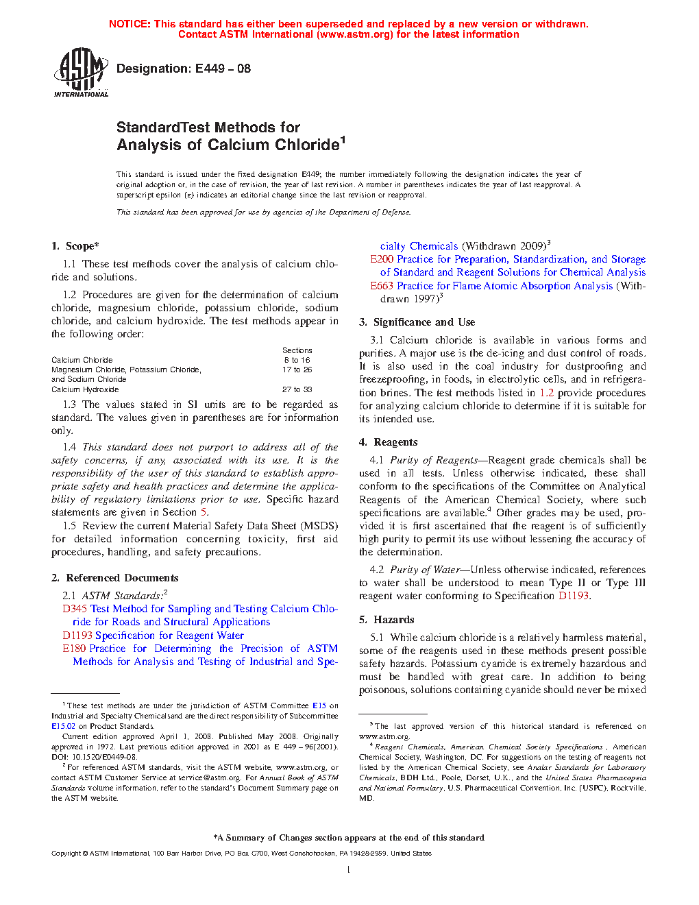 1.2 Procedures are given for the determination of calcium chloride, magnesium chloride, potassium chloride, sodium chloride, and calcium hydroxide. The test methods appear in the following order: