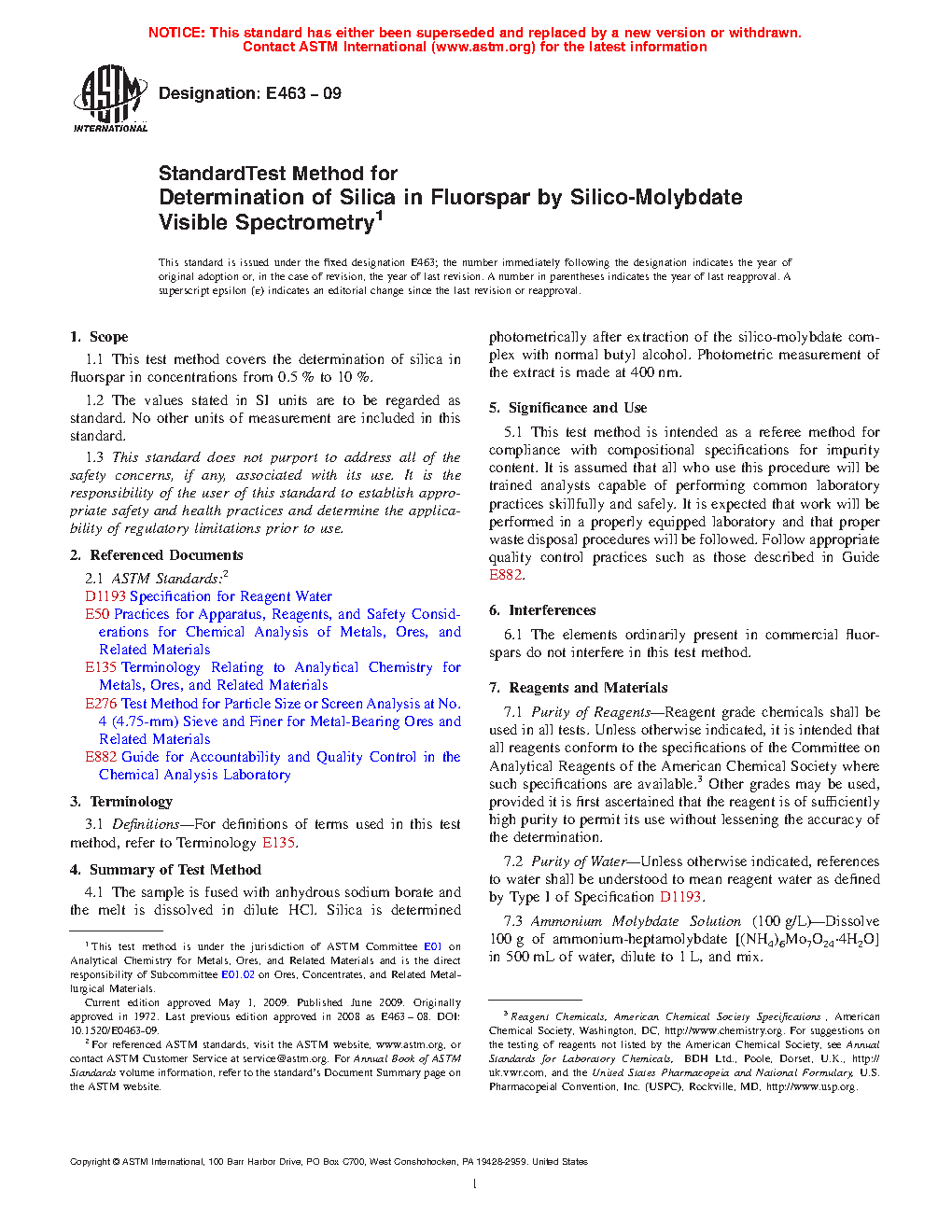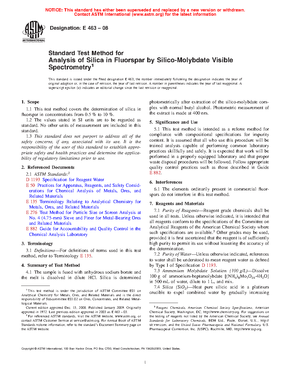 Standard Test Method for Silica in Fluorspar by the Silico-Molybdate Visible Spectrometry