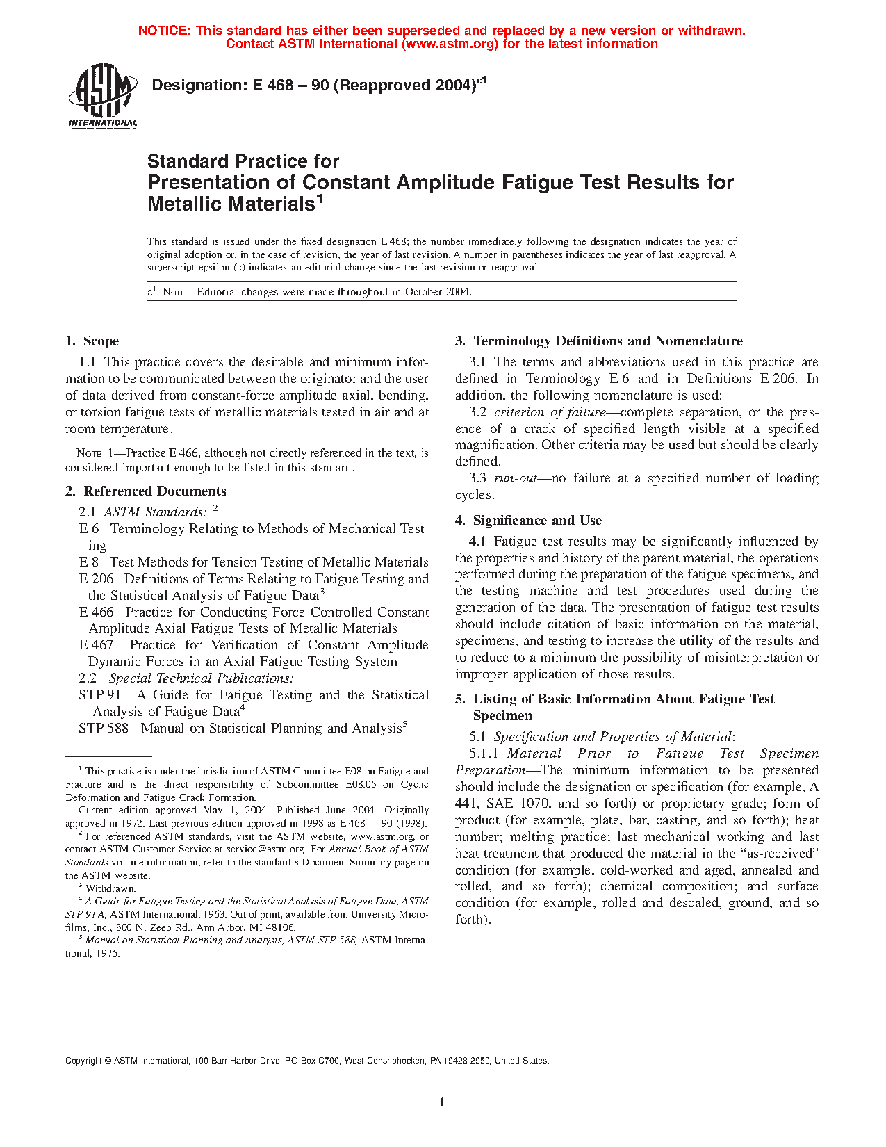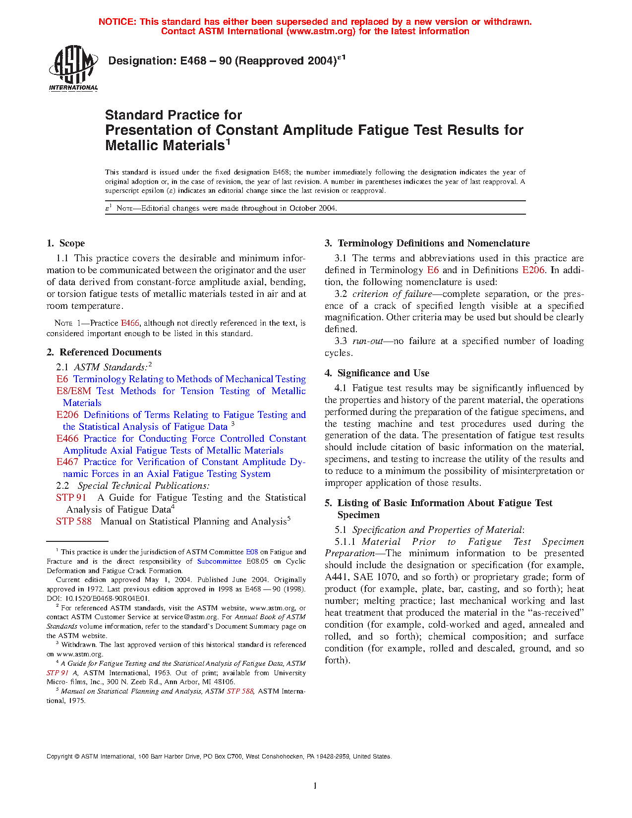 Note 1: Practice E466, although not directly referenced in the text, is considered important enough to be listed in this standard.