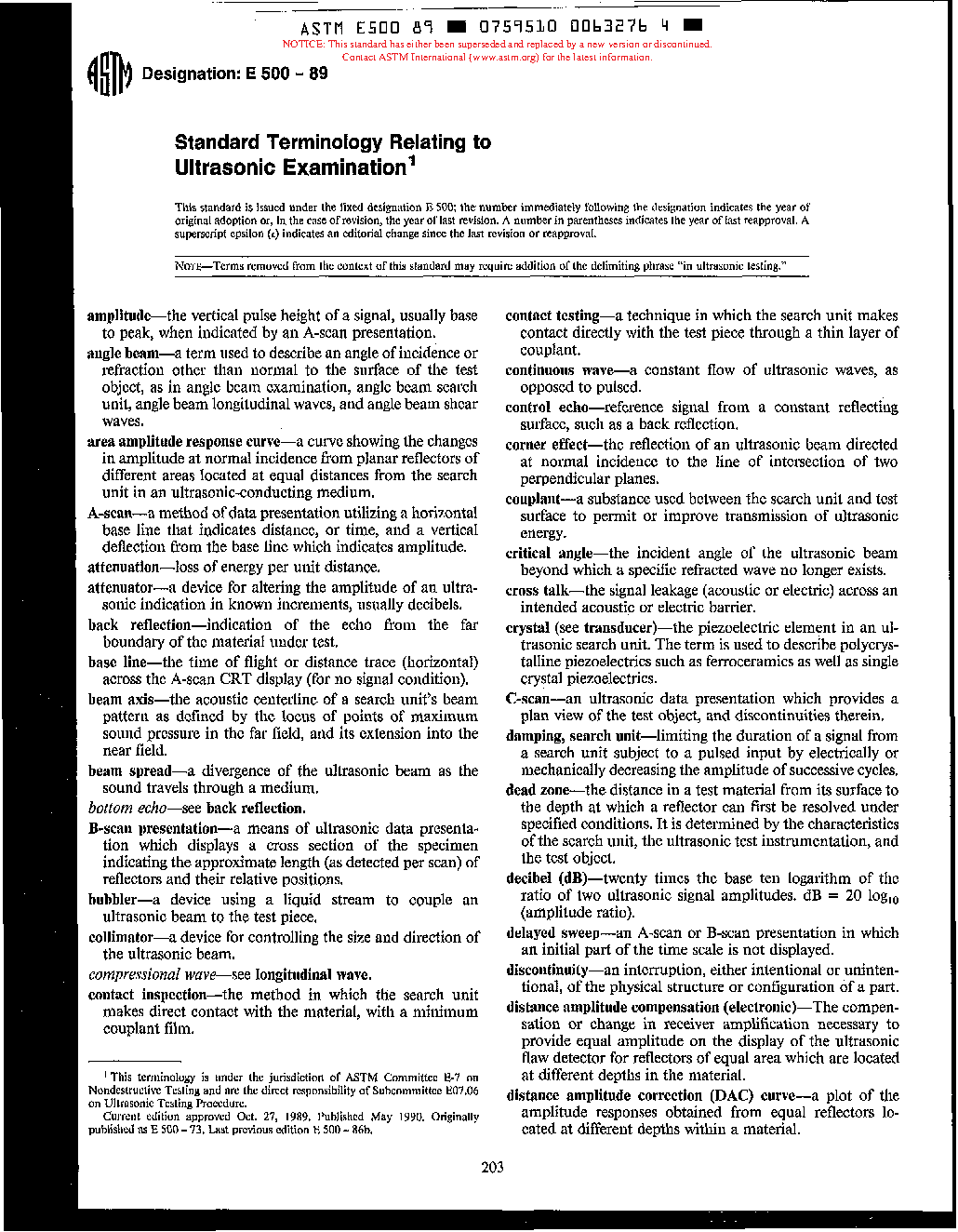 Definitions of Terms Relating to Ultrasonic Testing (Withdrawn 1991)