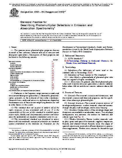 1.1 This practice covers photomultiplier properties that are essential to their judicious selection and use in emission and absorption spectrometry. Descriptions of these properties can be found in the following sections: