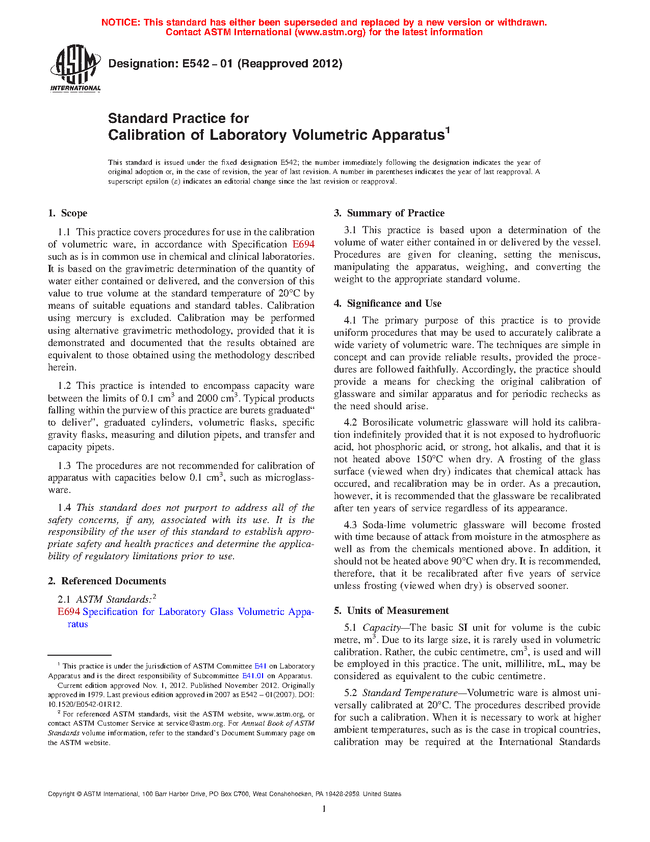 ASTM E542-01(2012)