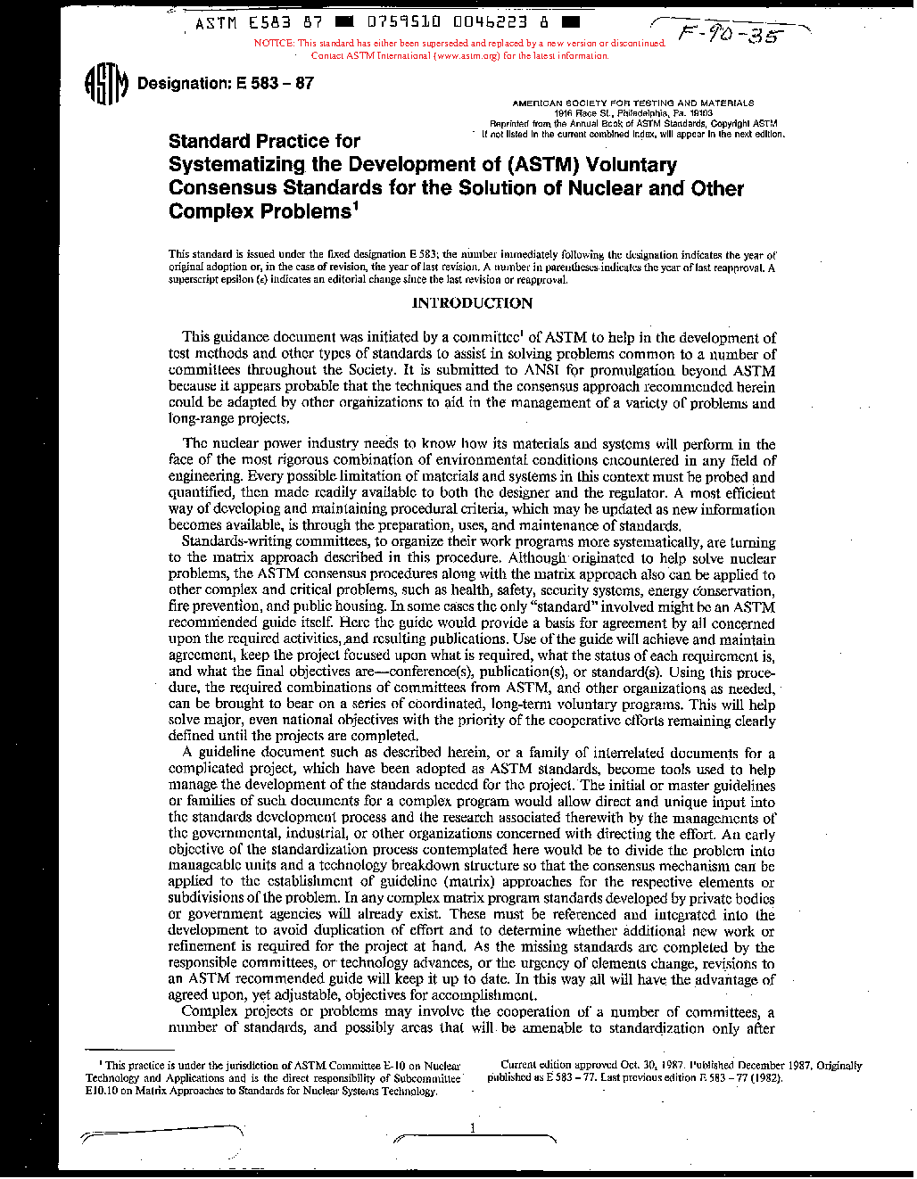 1.2 This practice describes how the ASTM system for developing and managing full consensus standards, in which individual ASTM committees usually are involved, can be coupled with matrix approaches to provide agreed-upon, yet adjustable objectives for voluntary accomplishment. This would apply irrespective of the time required, the number of ASTM committees concerned, or the complexity of the issues involved.