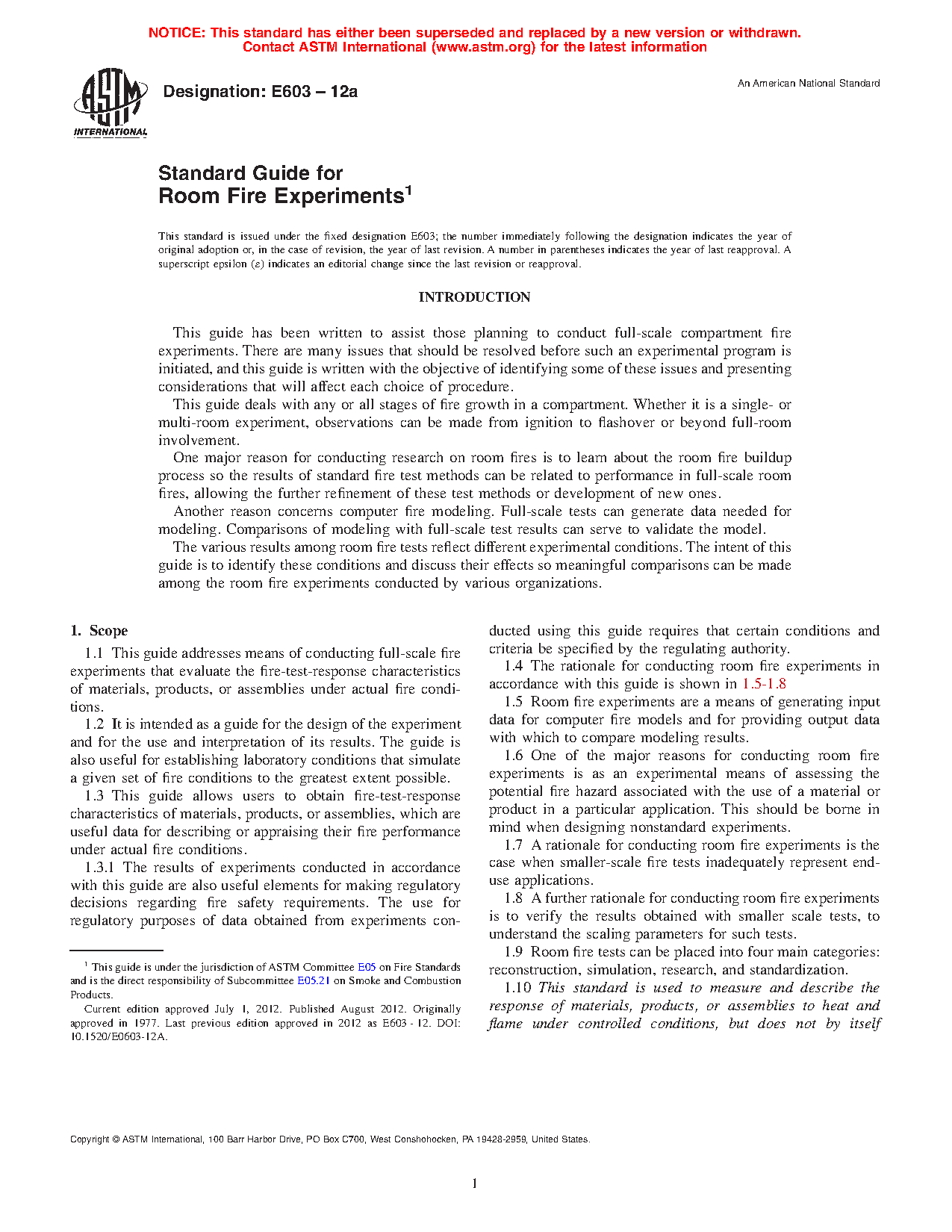 1.6 One of the major reasons for conducting room fire experiments is as an experimental means of assessing the potential fire hazard associated with the use of a material or product in a particular application. This should be borne in mind when designing nonstandard experiments.