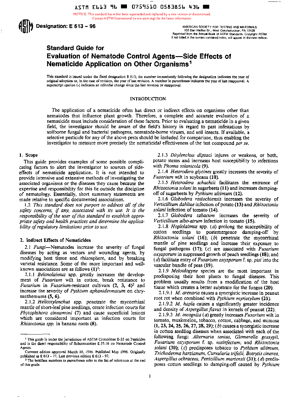 Guide for Evaluation of Nematode Control Agents-Side Effects of Nematicide Application on Other Organisms (Withdrawn 1997)