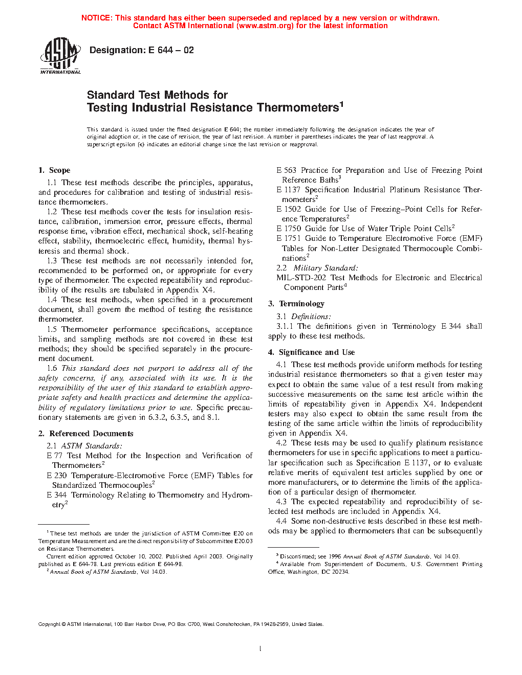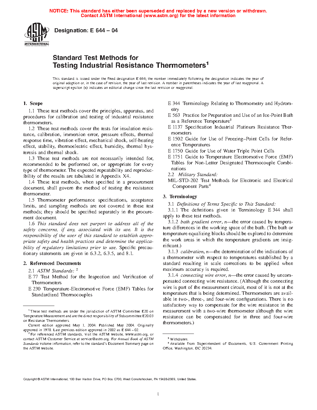 1.4 These test methods, when specified in a procurement document, shall govern the method of testing the resistance thermometer.