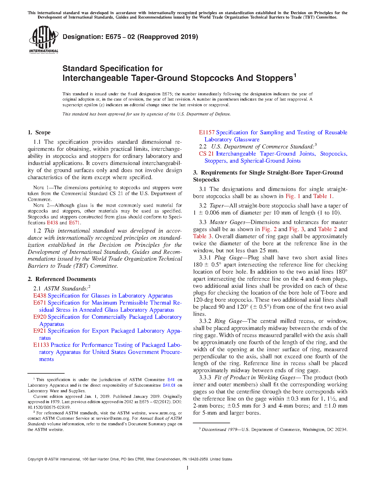 Note 1: The dimensions pertaining to stopcocks and stoppers were taken from the Commercial Standard CS 21 of the U.S. Department of Commerce.