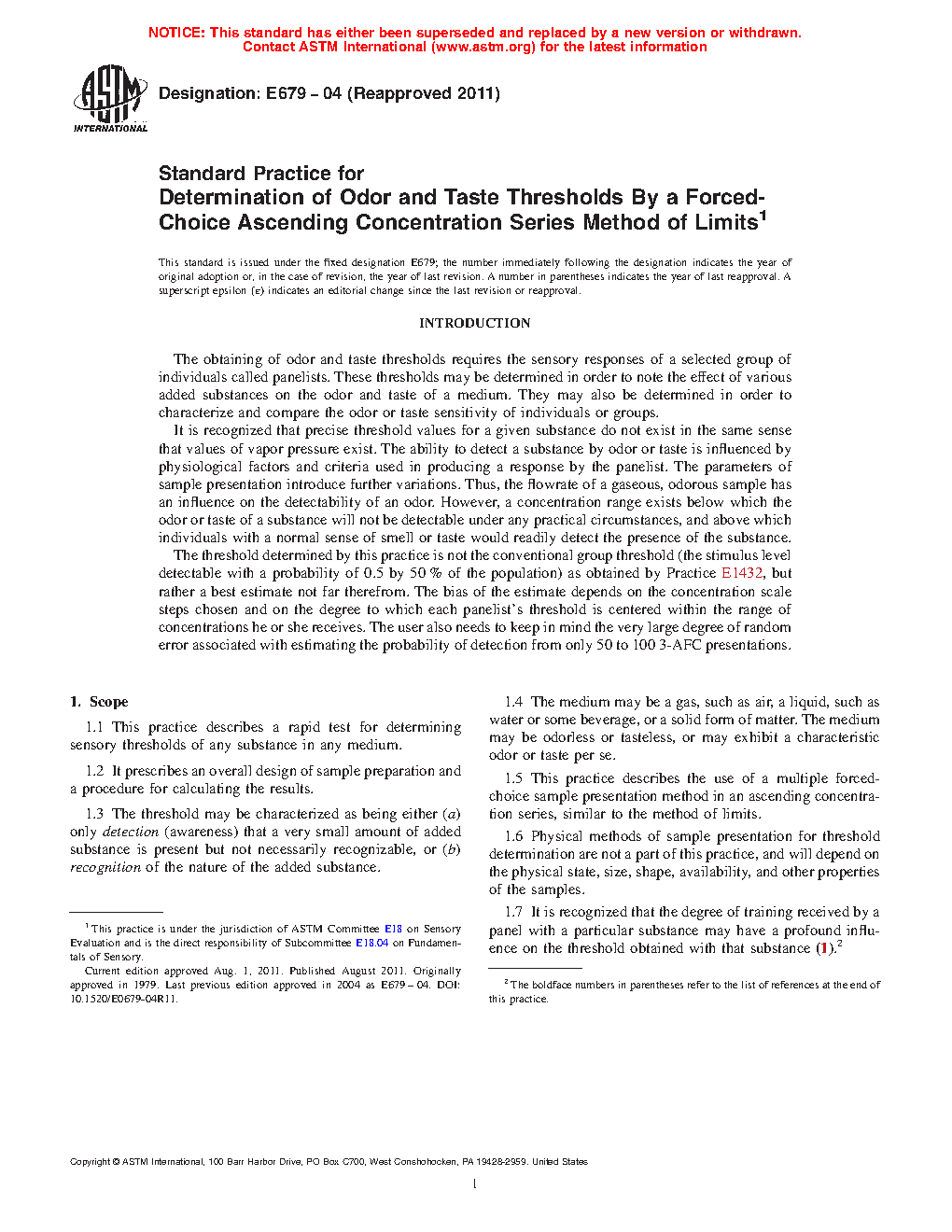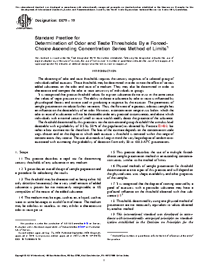1.5 This practice describes the use of a multiple forced-choice sample presentation method in an ascending concentration series, similar to the method of limits.