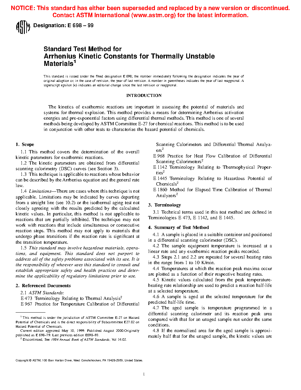 1.3 This technique is applicable to reactions whose behavior can be described by the Arrhenius equation and the general rate law.