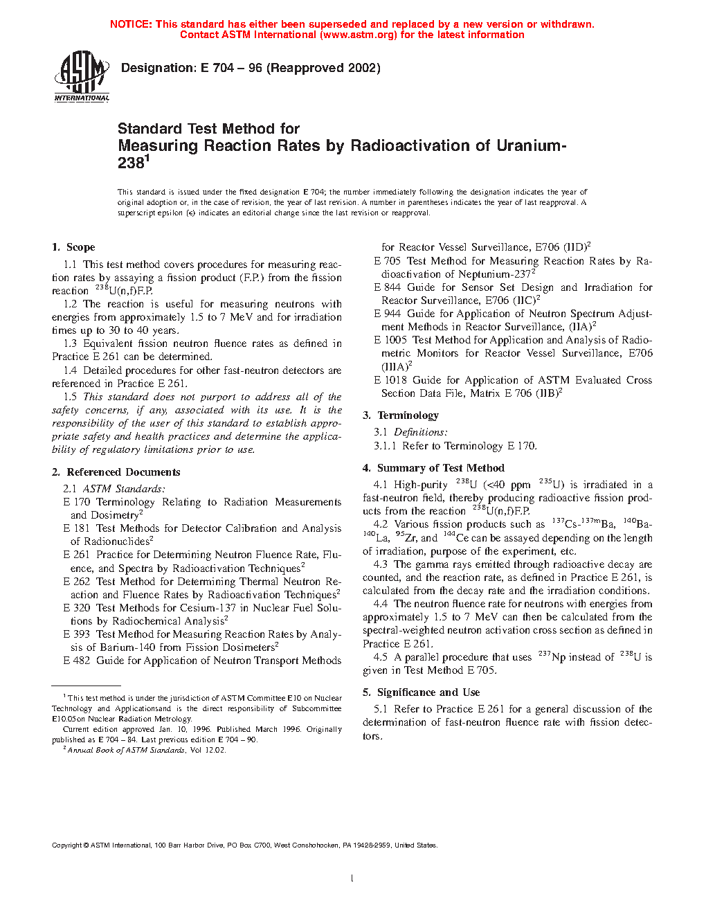 5.1 Refer to Practice E261 for a general discussion of the determination of fast-neutron fluence rate with fission detectors.