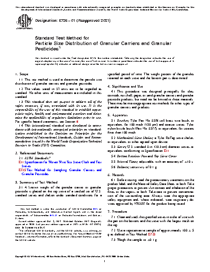 1.1 This test method is used to determine the particle size distribution of granular carriers and granular pesticides.