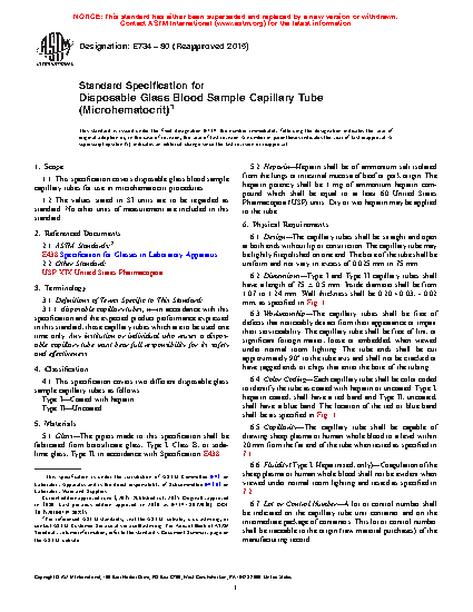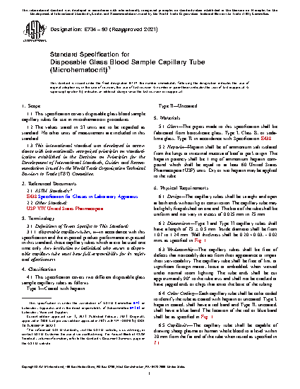 1.1 This specification covers disposable glass blood sample capillary tubes for use in microhematocrit procedures.