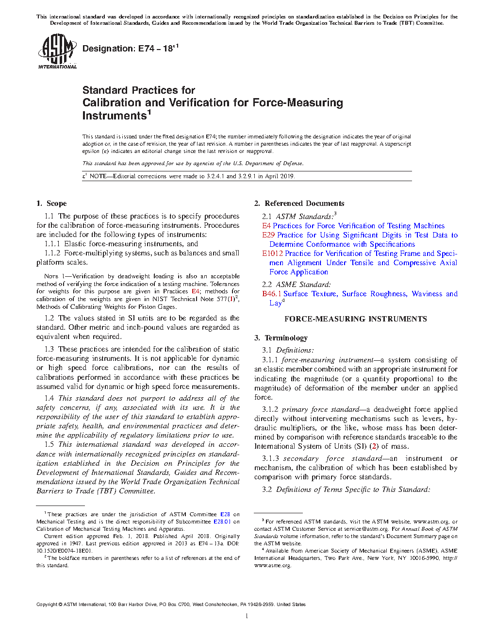 ASTM E74-18