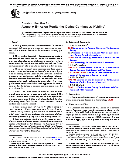 1.2 The procedure described in this practice is applicable to the detection and location of AE sources in weldments and in their heat-affected zone during fabrication, particularly in those cases where the time duration of welding is such that fusion and solidification take place while welding is still in progress.