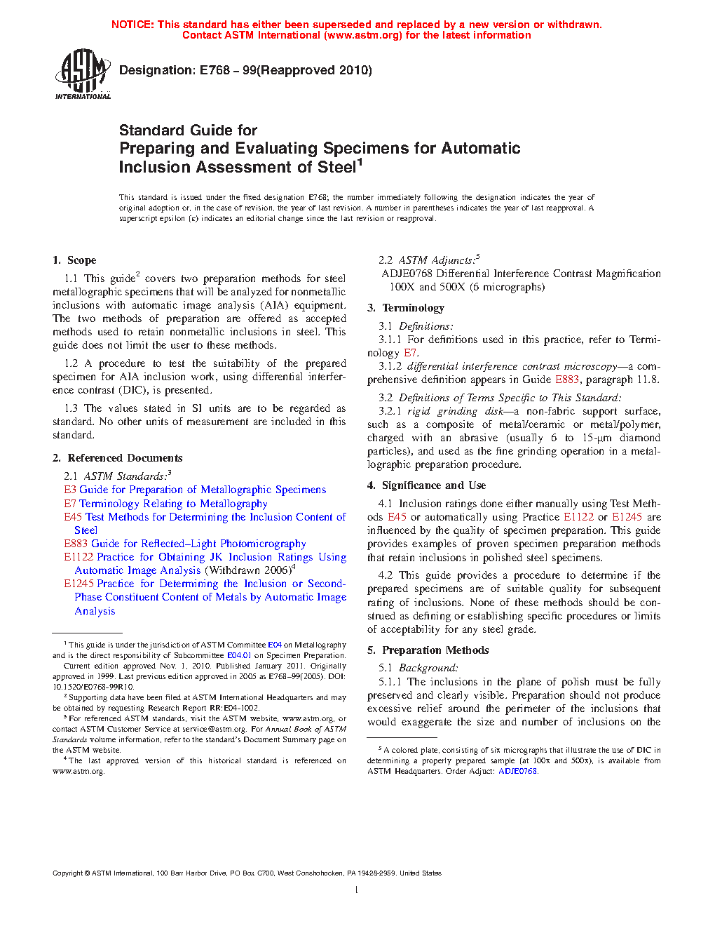 1.2 A procedure to test the suitability of the prepared specimen for AIA inclusion work, using differential interference contrast (DIC), is presented.