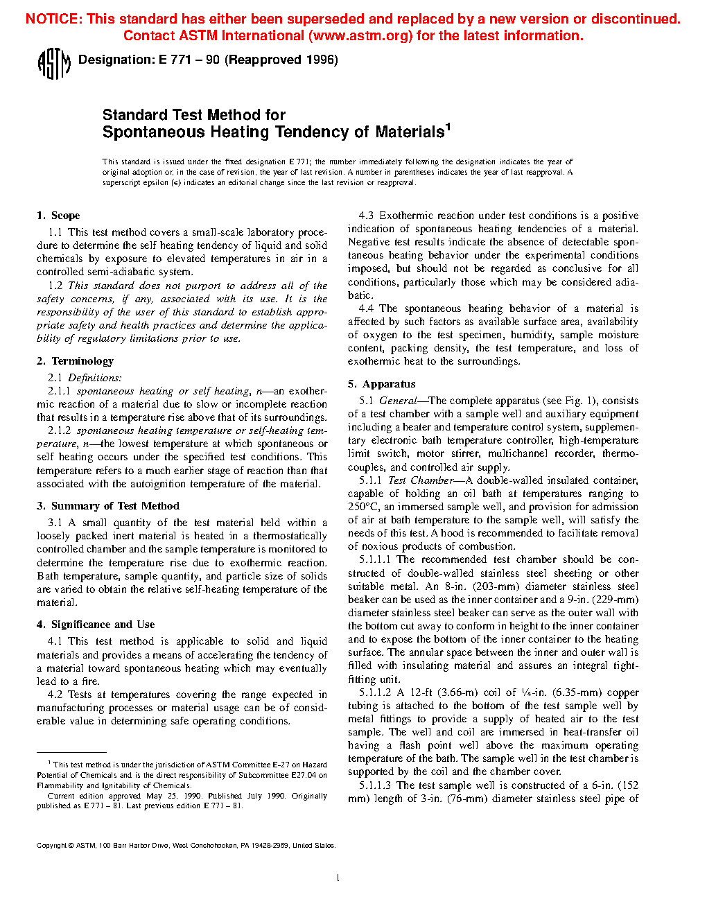 Standard Test Method for Spontaneous Heating Tendency of Materials (Withdrawn 2001)