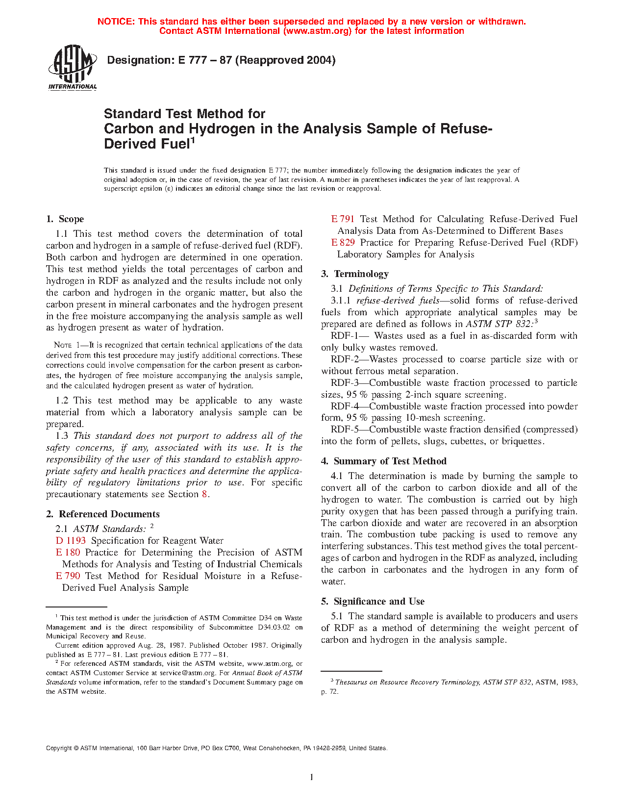 5.2 Carbon and hydrogen are components of RDF and, when determined, can be used for calculating RDF combustion characteristics.