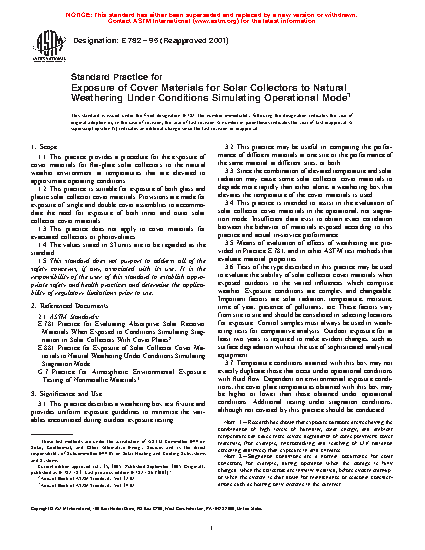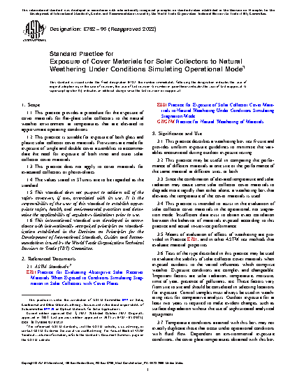 1.1 This practice provides a procedure for the exposure of cover materials for flat-plate solar collectors to the natural weather environment at temperatures that are elevated to approximate operating conditions.
