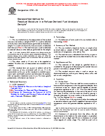 5.1 The procedure in this test method for a sample as specified herein is intended for the purpose of determining the residual moisture present in a RDF analysis sample.