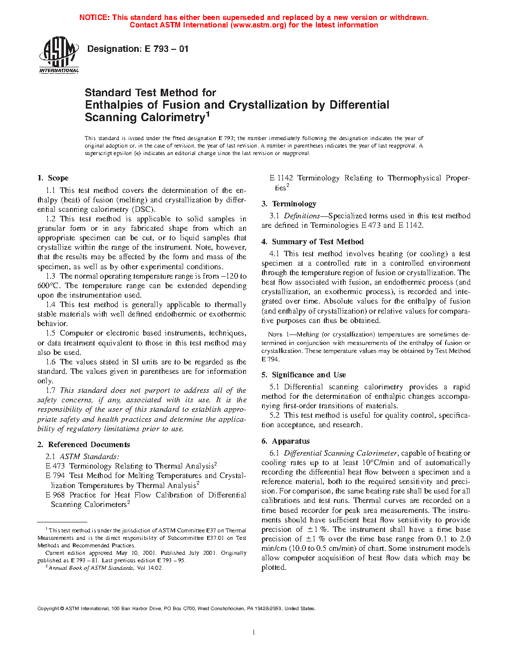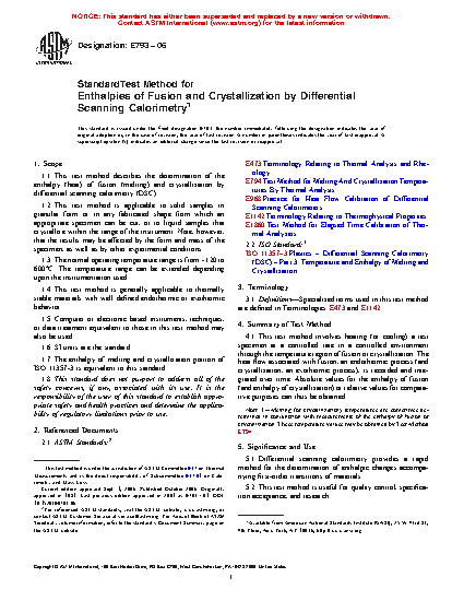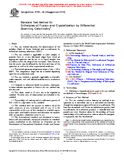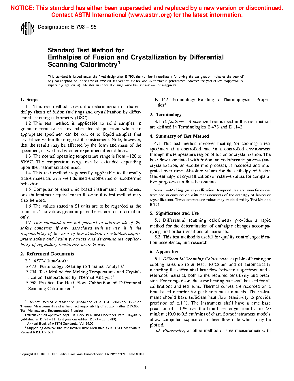 1.7 The enthalpy of melting and crystallization portion of ISO 11357-3 is equivalent to this standard.