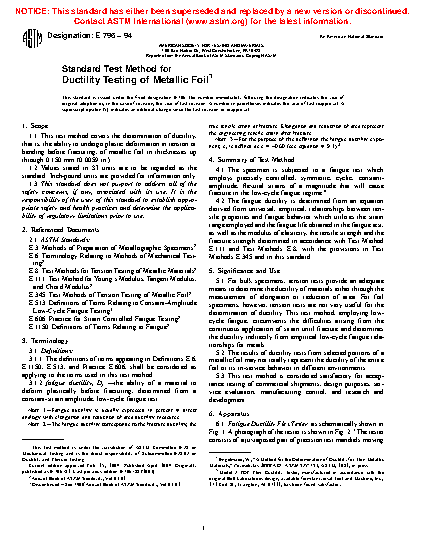 1.1 This test method covers the determination of ductility, that is, the ability to undergo plastic deformation in tension or bending before fracturing, of metallic foil in thicknesses up through 0.150 mm (0.0059 in.).