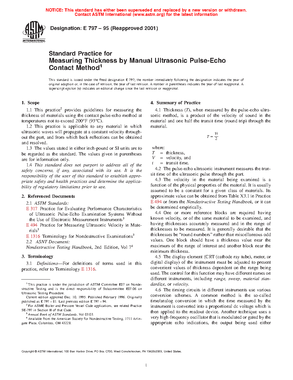 1.1 This practice provides guidelines for measuring the thickness of materials using the contact pulse-echo method at temperatures not to exceed 200oF (93oC).