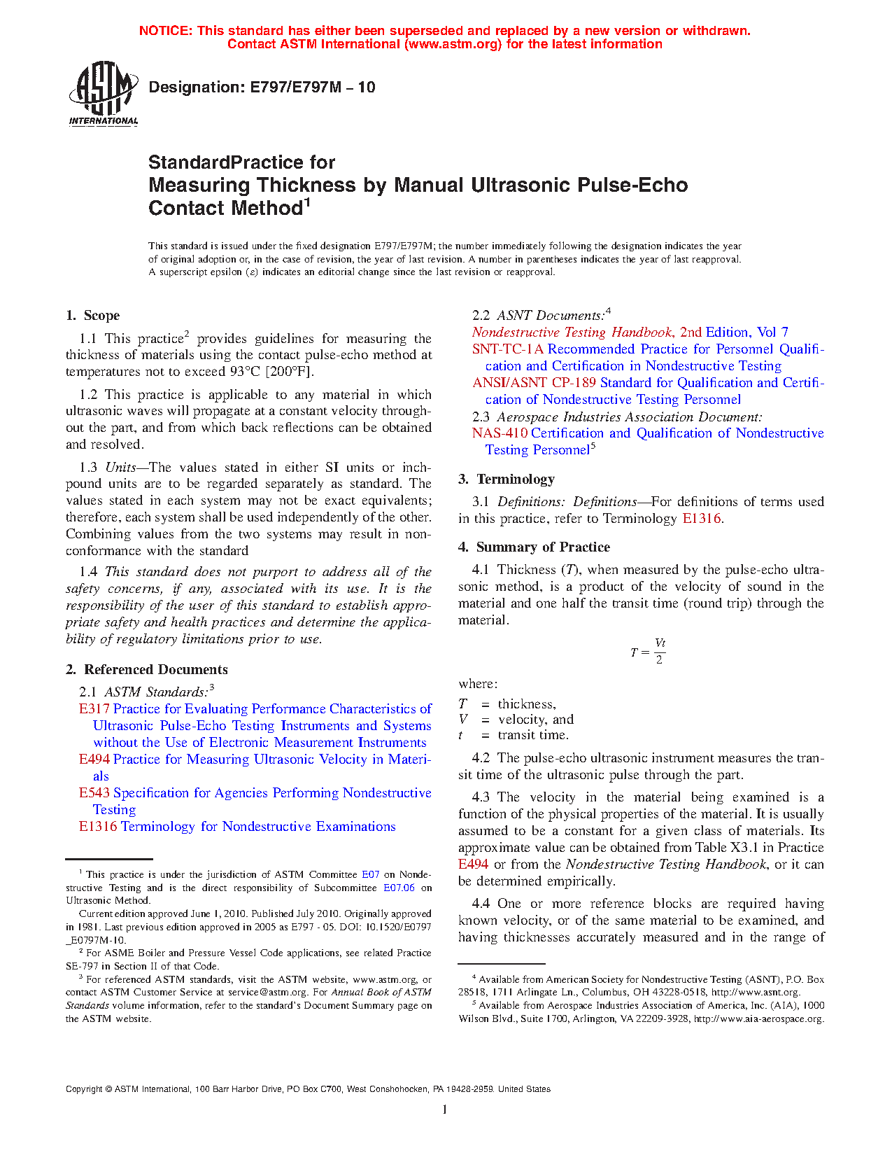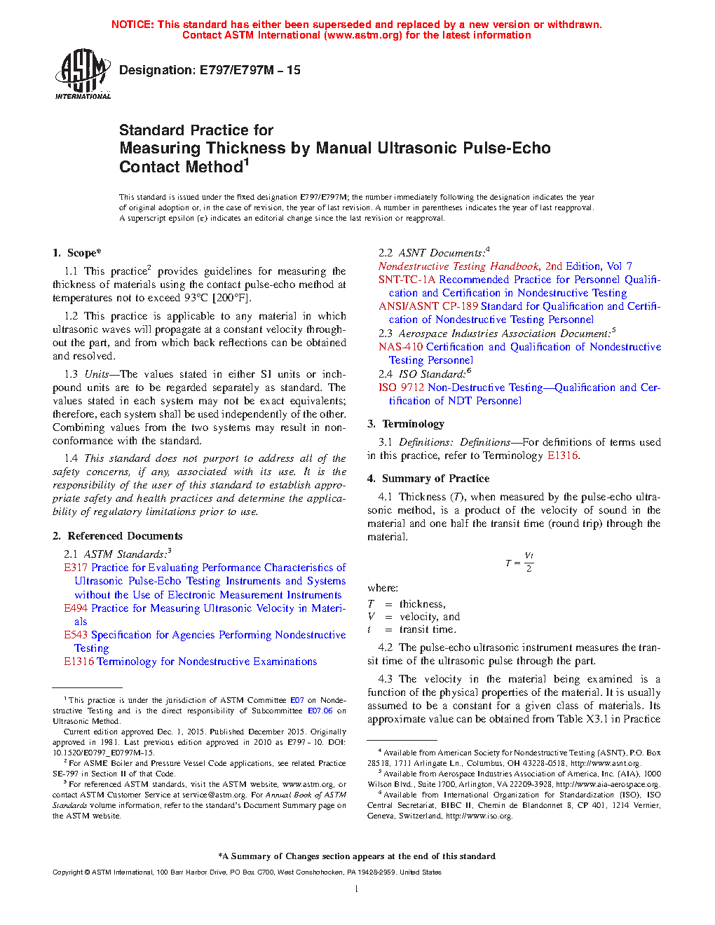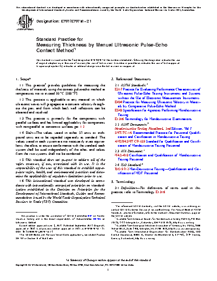 1.1 This practice2 provides guidelines for measuring the thickness of materials using the contact pulse-echo method at temperatures not to exceed 93 °C [200 °F].