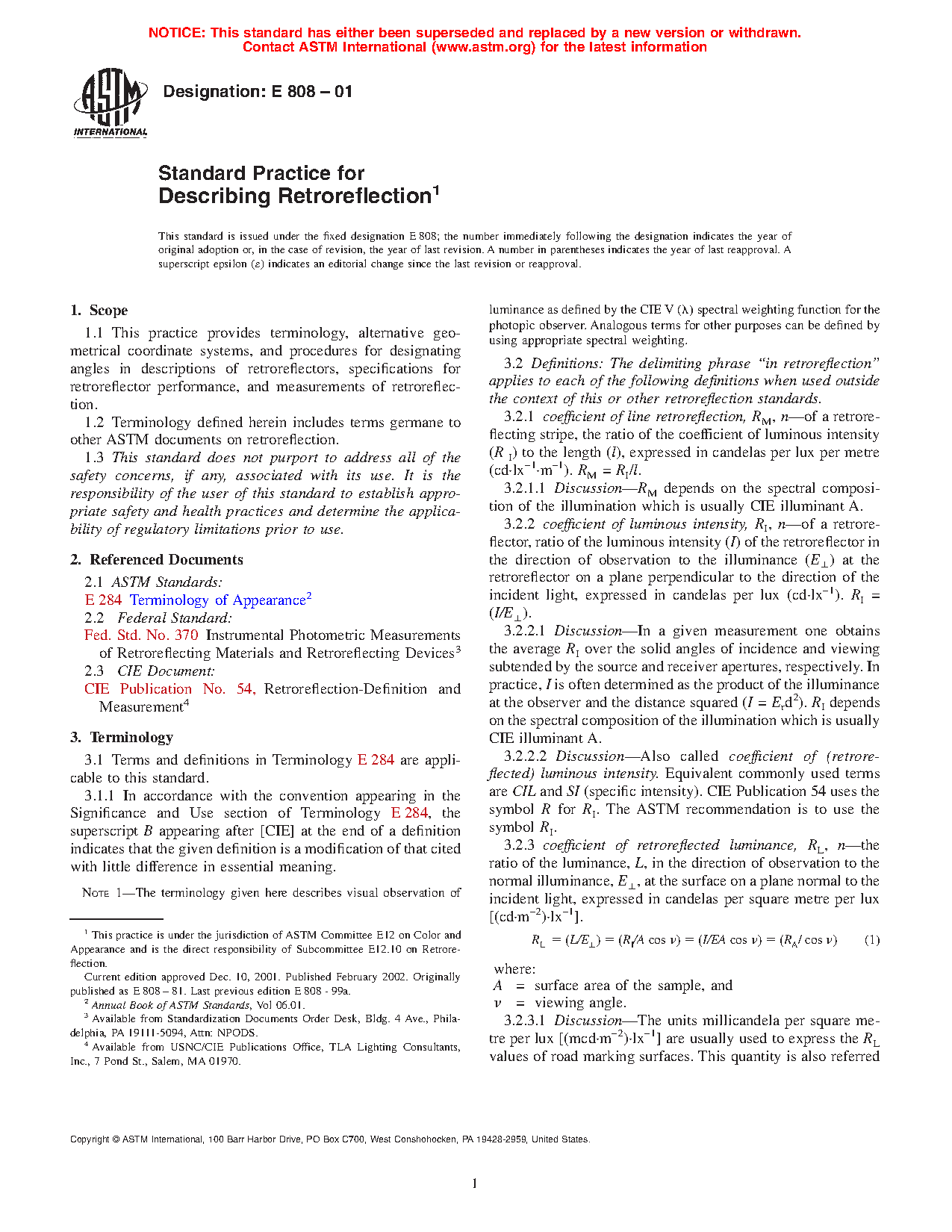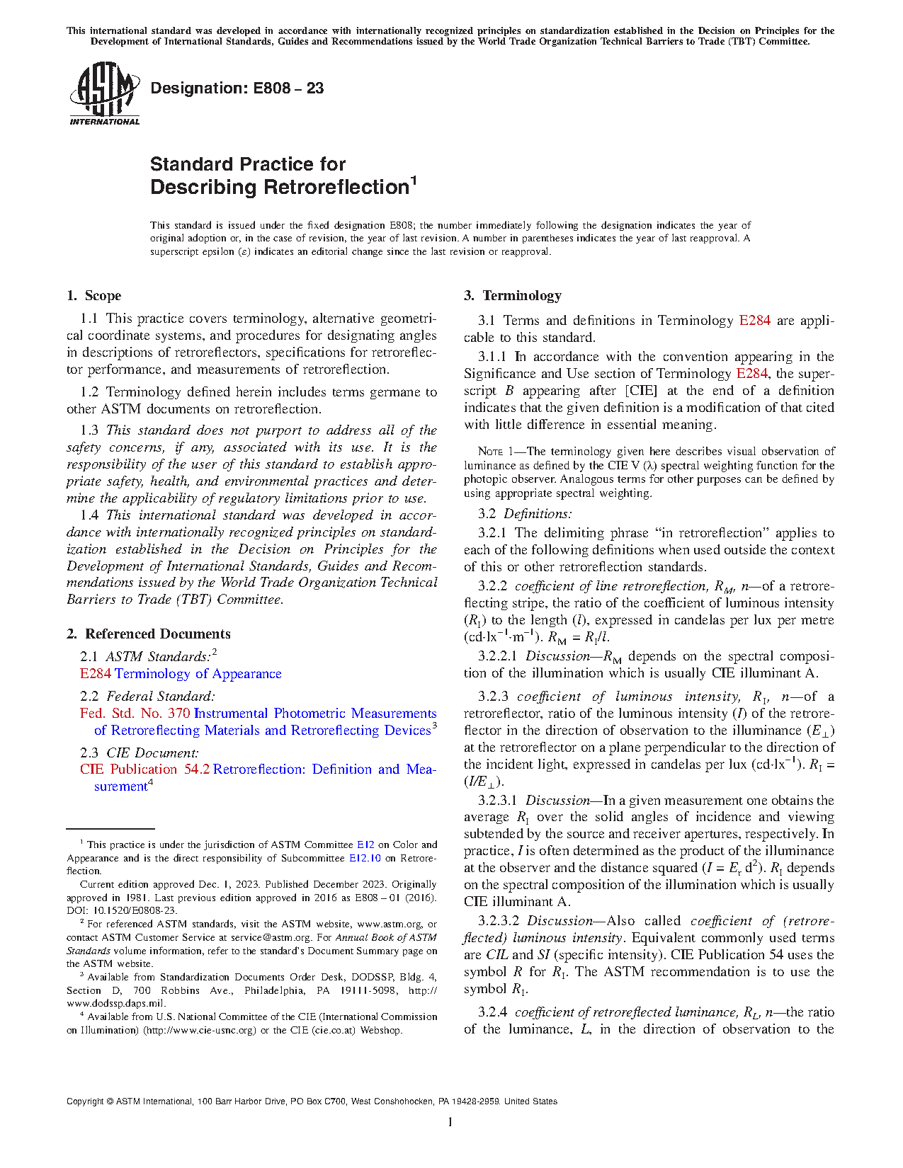 1.2 Terminology defined herein includes terms germane to other ASTM documents on retroreflection.