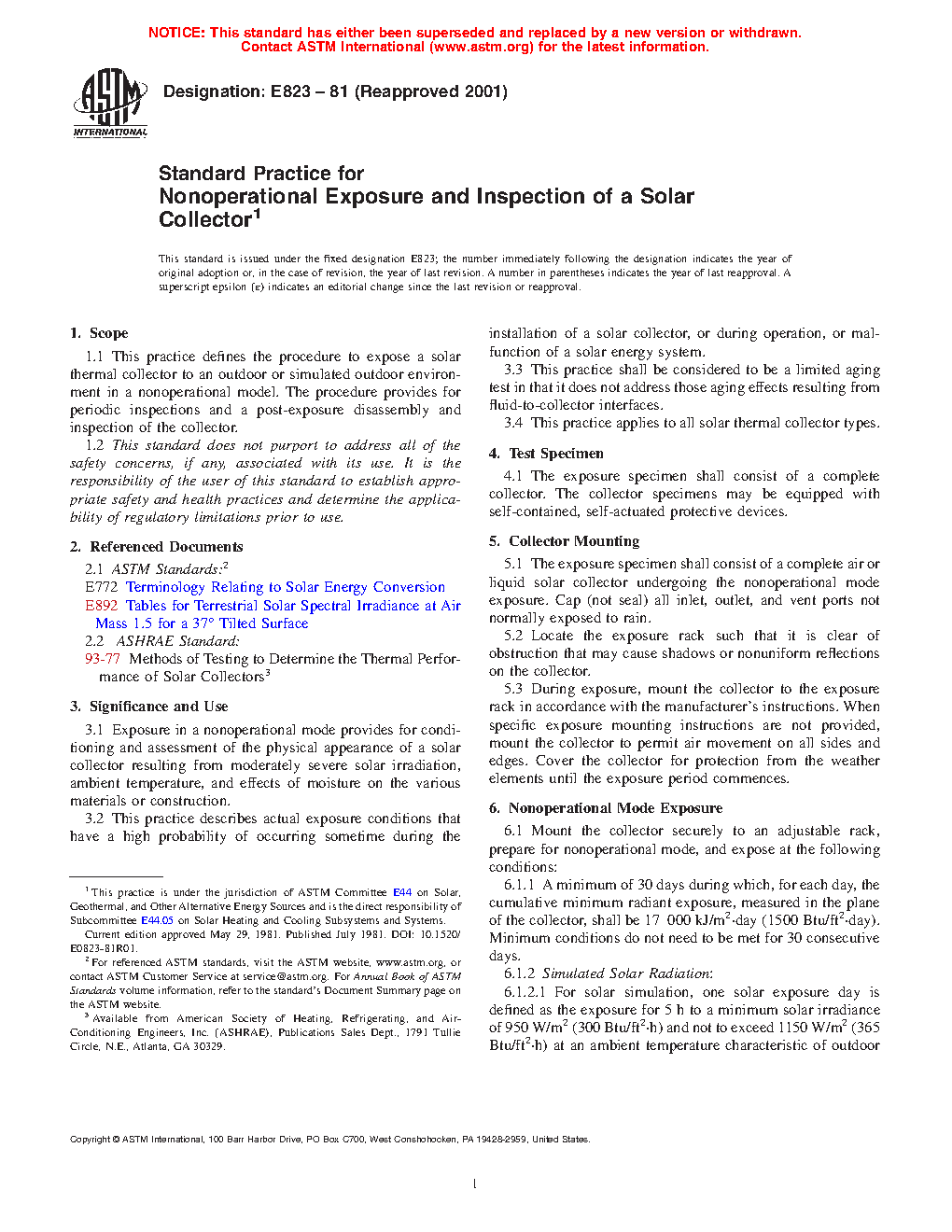 Standard Practice for Nonoperational Exposure and Inspection of a Solar Collector