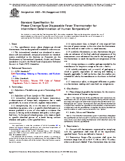 1.1 This specification covers phase change-type clinical thermometers that are designed and intended for one time use.
