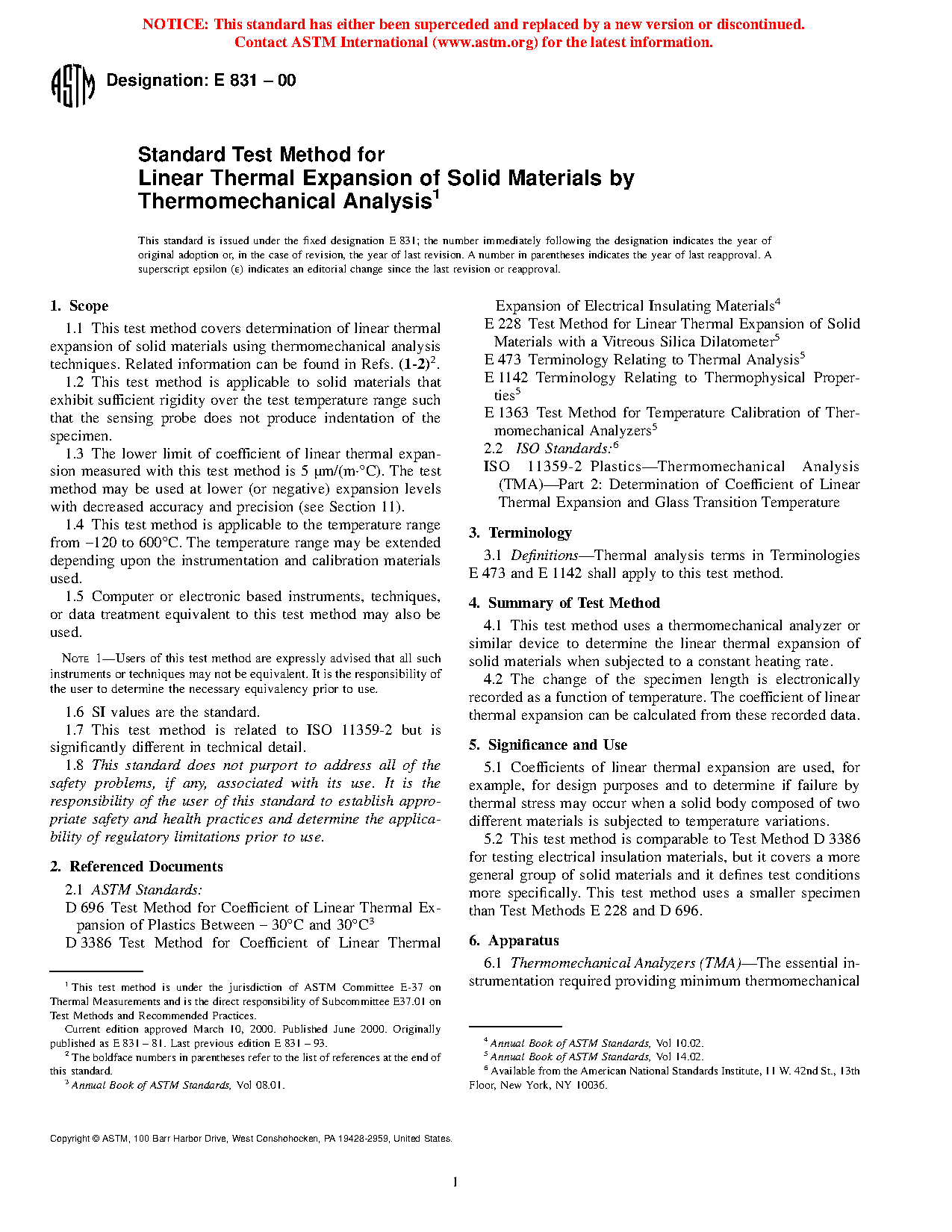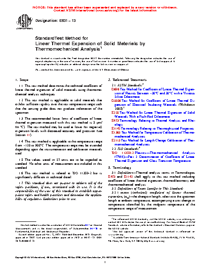 1.1 This test method determines the technical coefficient of linear thermal expansion of solid materials using thermomechanical analysis techniques.