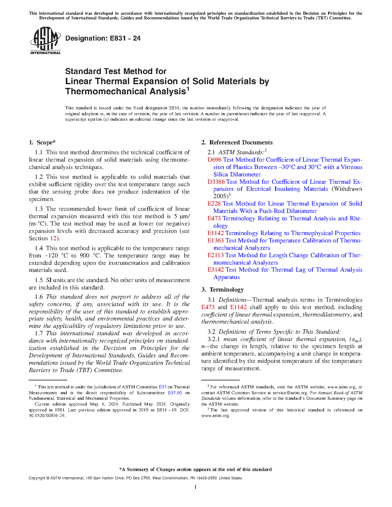 1.3 The recommended lower limit of coefficient of linear thermal expansion measured with this test method is 5 µm/(m·°C). The test method may be used at lower (or negative) expansion levels with decreased accuracy and precision (see Section 12).