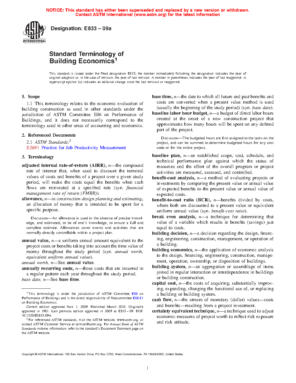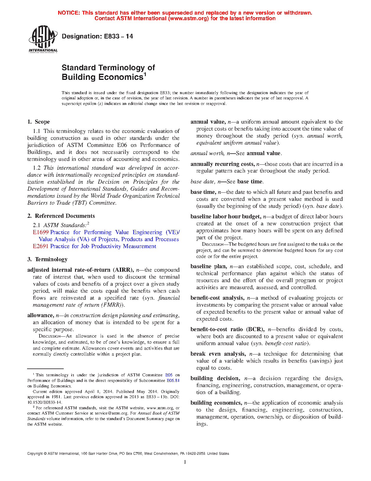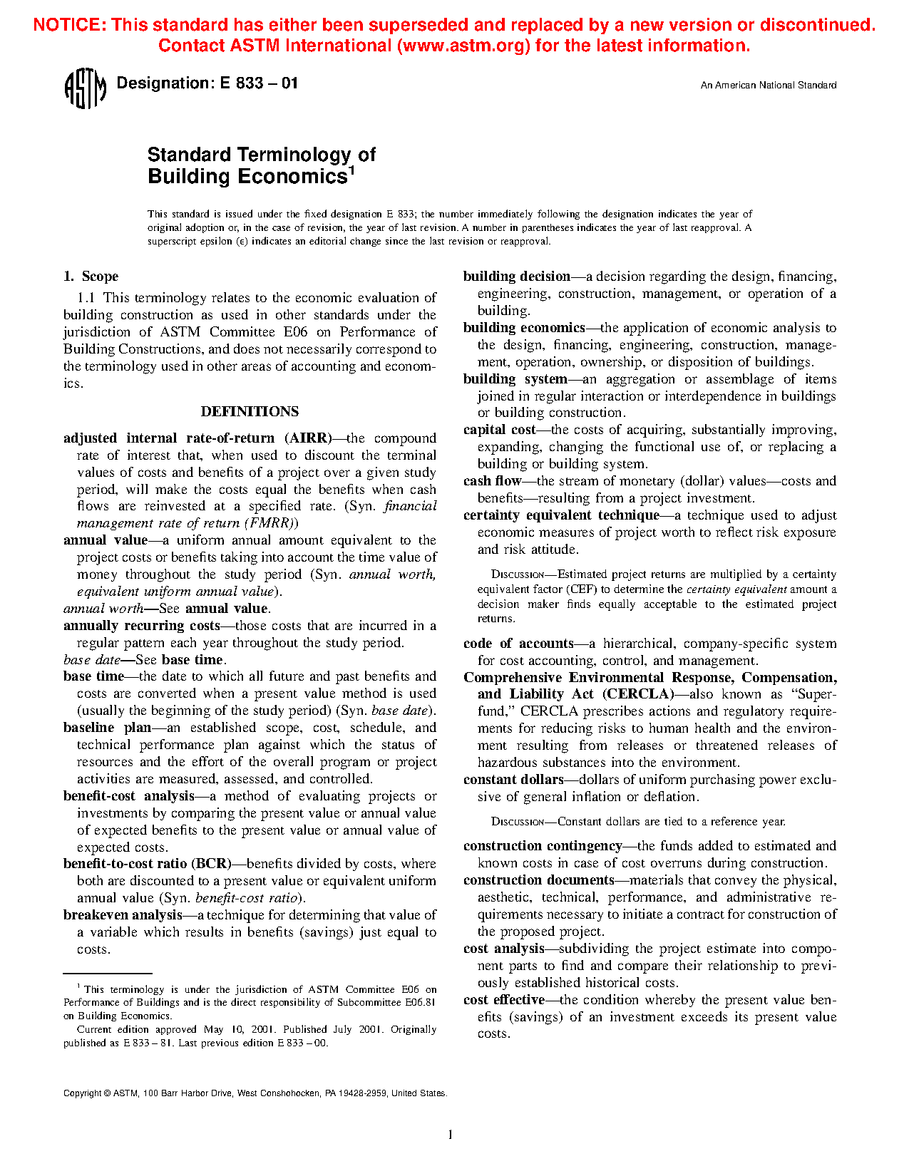 1.1 This terminology relates to the economic evaluation of building construction as used in other standards under the jurisdiction of ASTM Committee E06 on Performance of Building Constructions, and does not necessarily correspond to the terminology used in other areas of accounting and economics.