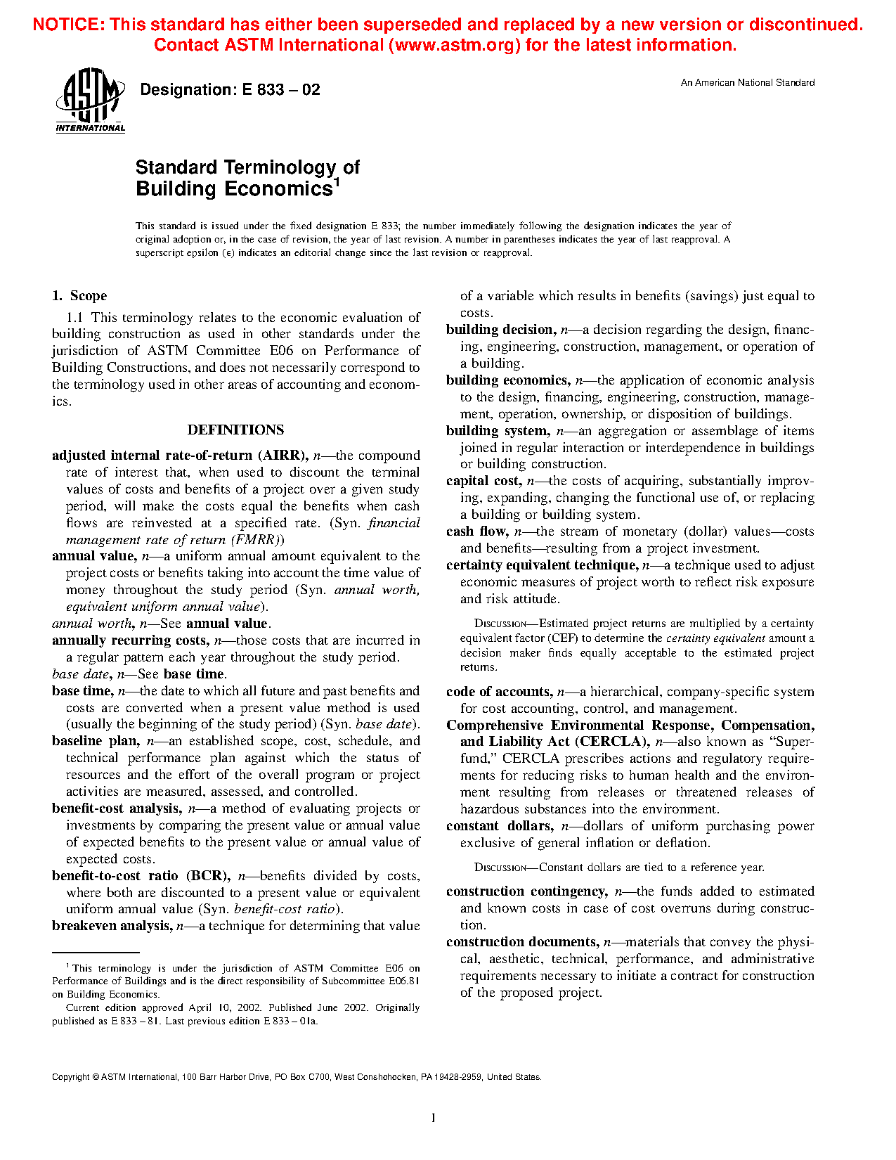 1.1 This terminology relates to the economic evaluation of building construction as used in other standards under the jurisdiction of ASTM Committee E06 on Performance of Buildings, and it does not necessarily correspond to the terminology used in other areas of accounting and economics.