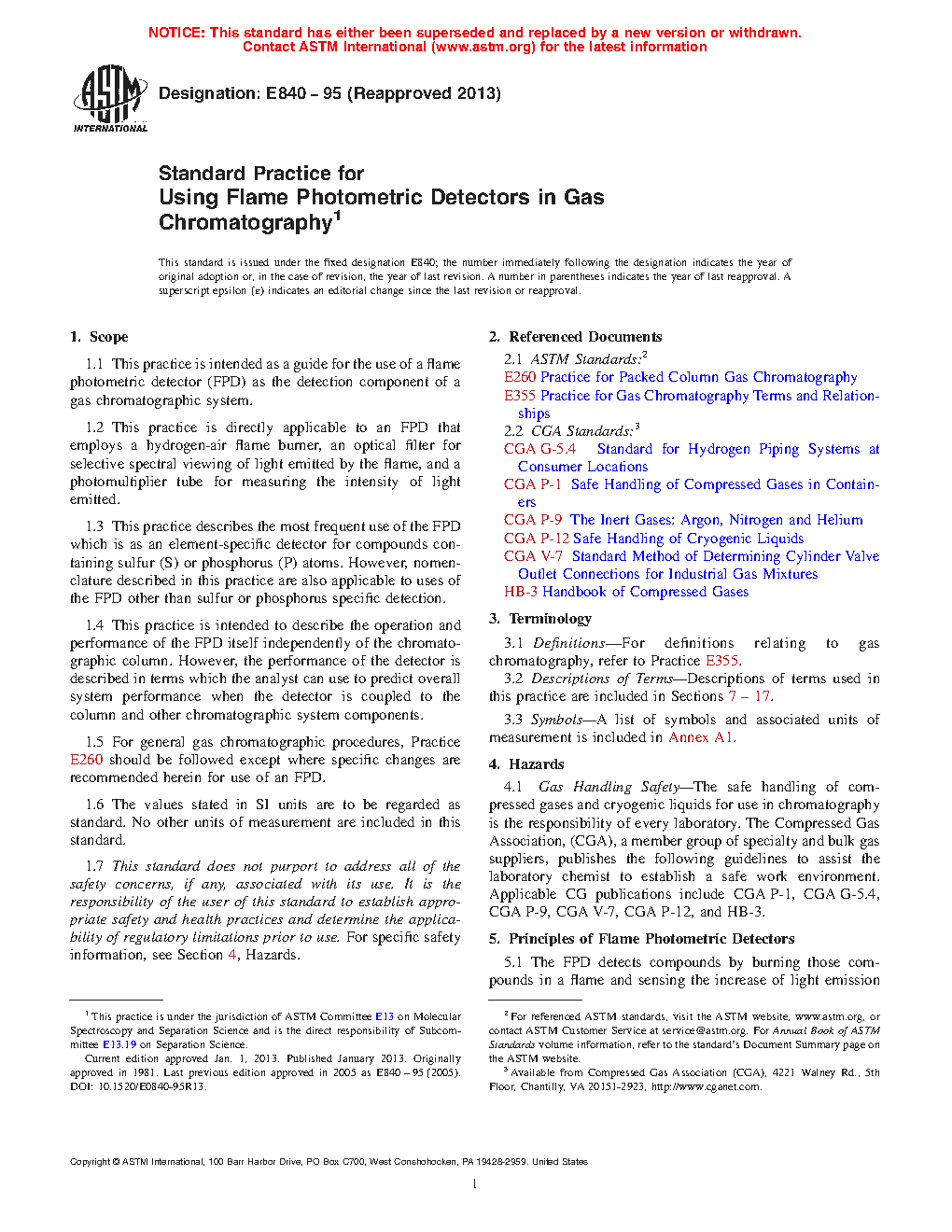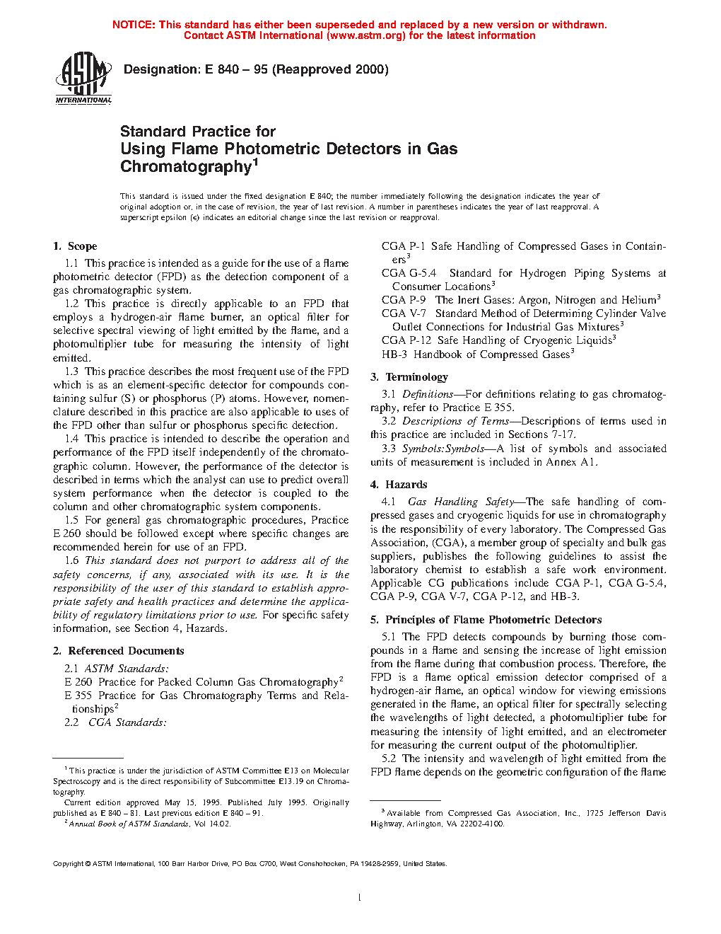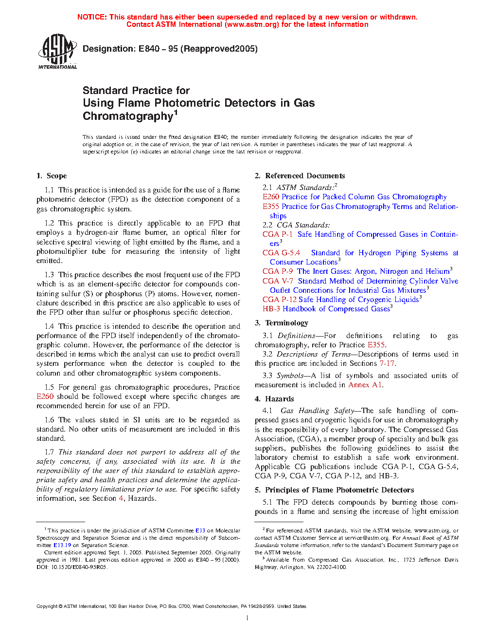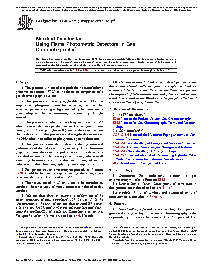 1.5 For general gas chromatographic procedures, Practice E260 should be followed except where specific changes are recommended herein for use of an FPD.