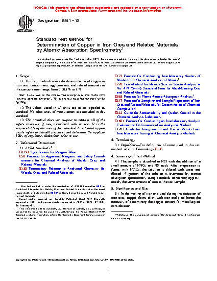 1.1 This test method covers the determination of copper in iron ores, concentrates, agglomerates, and related materials in the concentration range from 0.003 to 1 %.