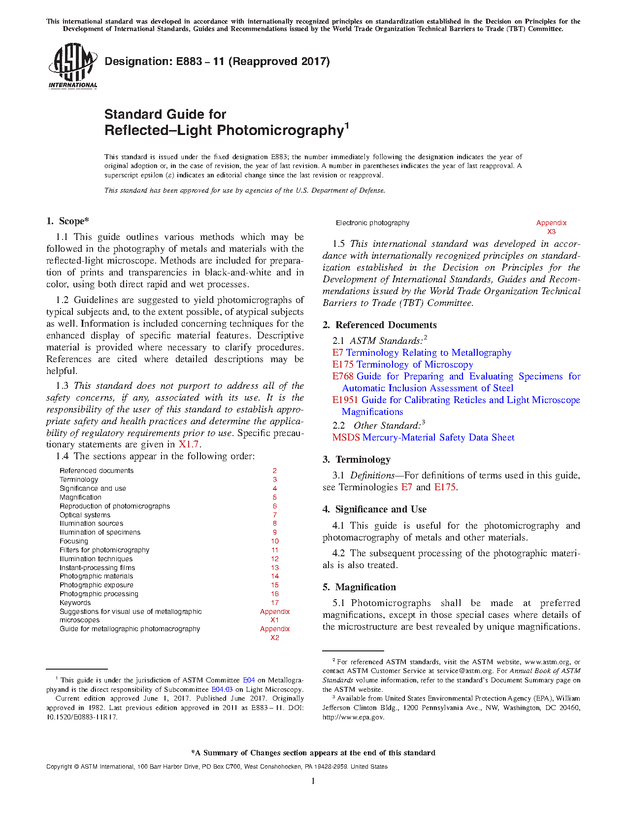 1.2 Guidelines are suggested to yield photomicrographs of typical subjects and, to the extent possible, of atypical subjects as well. Information is included concerning techniques for the enhanced display of specific material features. Descriptive material is provided where necessary to clarify procedures. References are cited where detailed descriptions may be helpful.