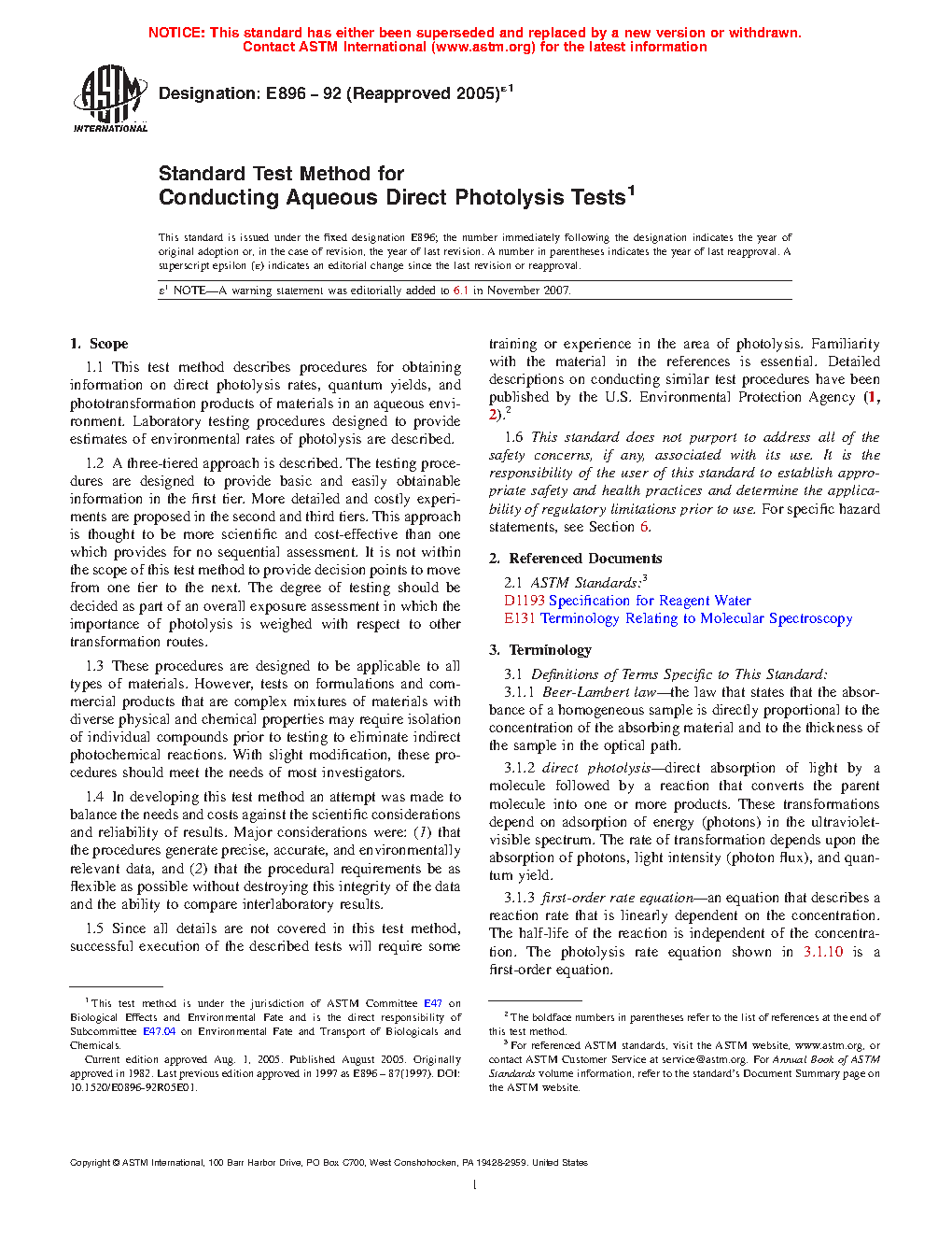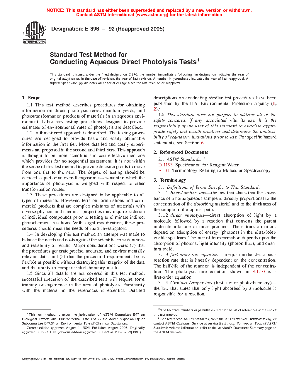 1.5 Since all details are not covered in this test method, successful execution of the described tests will require some training or experience in the area of photolysis. Familiarity with the material in the references is essential. Detailed descriptions on conducting similar test procedures have been published by the U.S. Environmental Protection Agency
