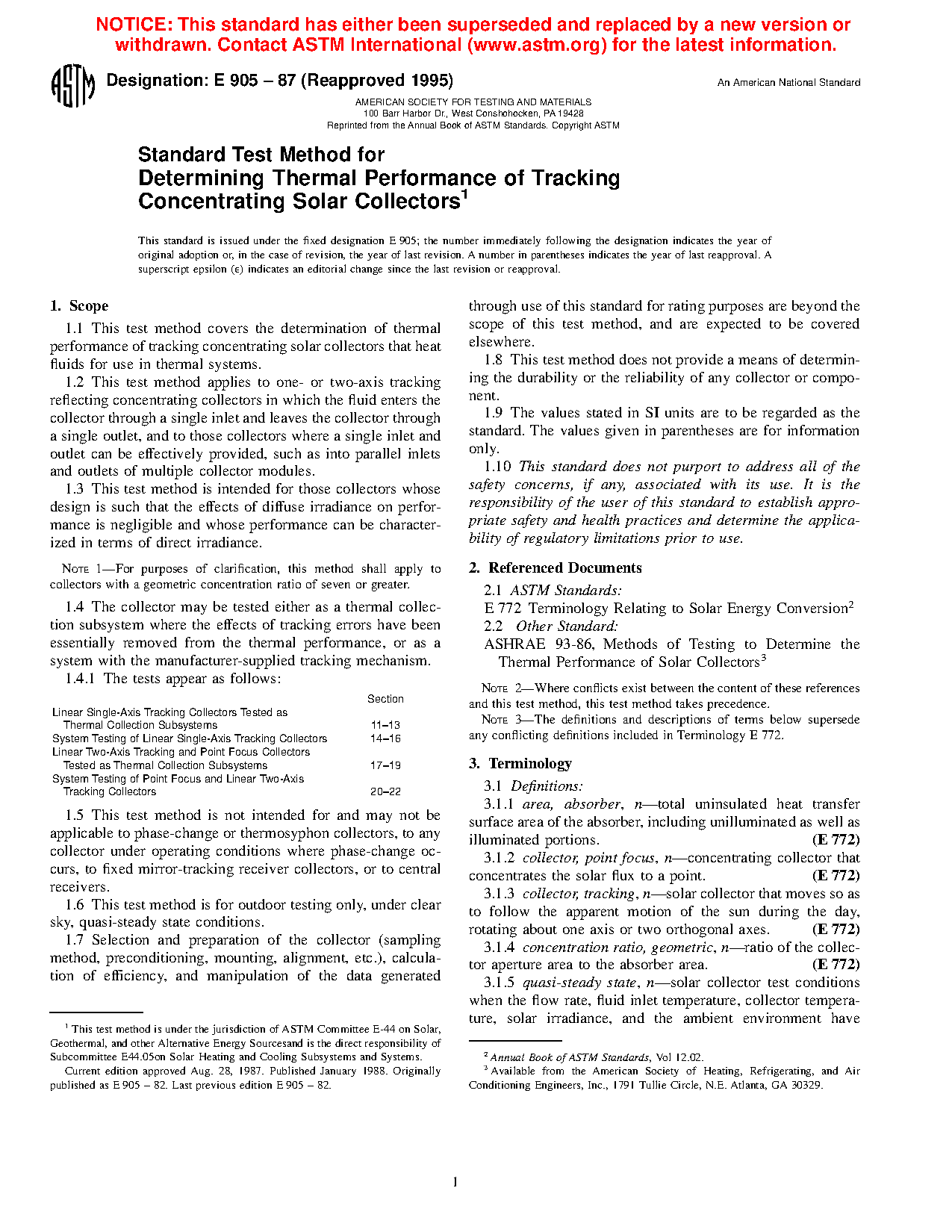 1.4 The collector may be tested either as a thermal collection subsystem where the effects of tracking errors have been essentially removed from the thermal performance, or as a system with the manufacturer-supplied tracking mechanism.