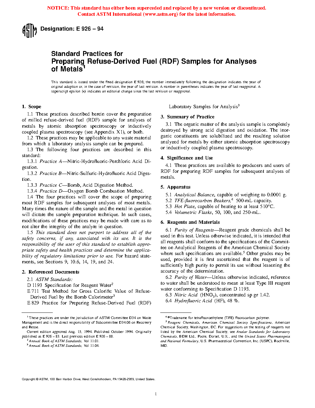 1.4 The four practices will cover the scope of preparing most RDF samples for subsequent analyses of most metals. Many times the nature of the sample and the metal in question will dictate the sample preparation technique. In such cases, modifications of these practices may be made with care as to not alter the integrity of the analyte in question.