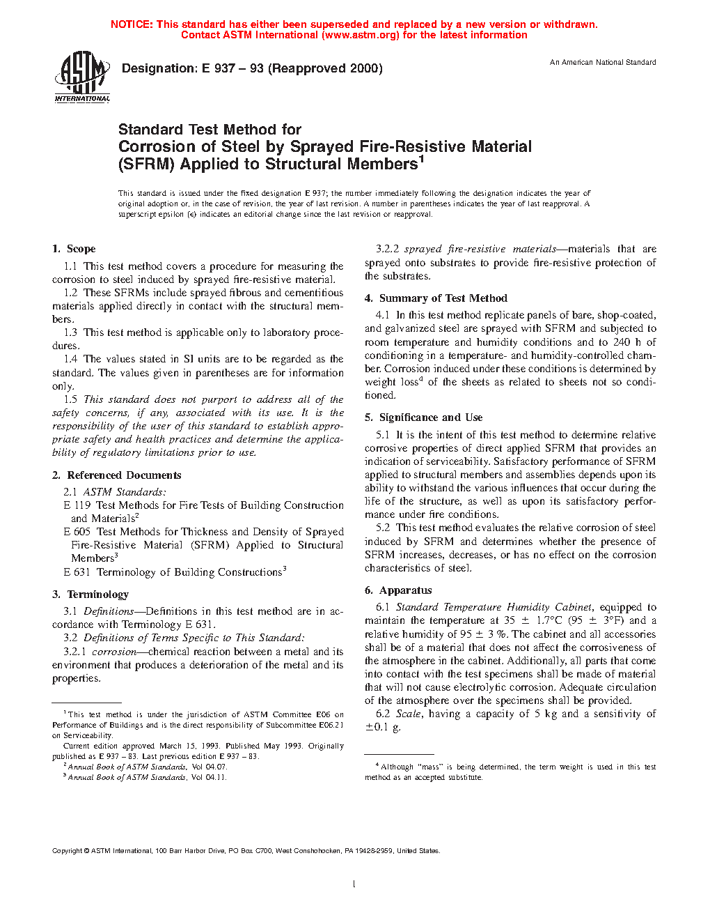 This test method evaluates the relative corrosion of steel induced by SFRM and determines whether the presence of SFRM increases, decreases, or has no effect on the corrosion characteristics of steel.