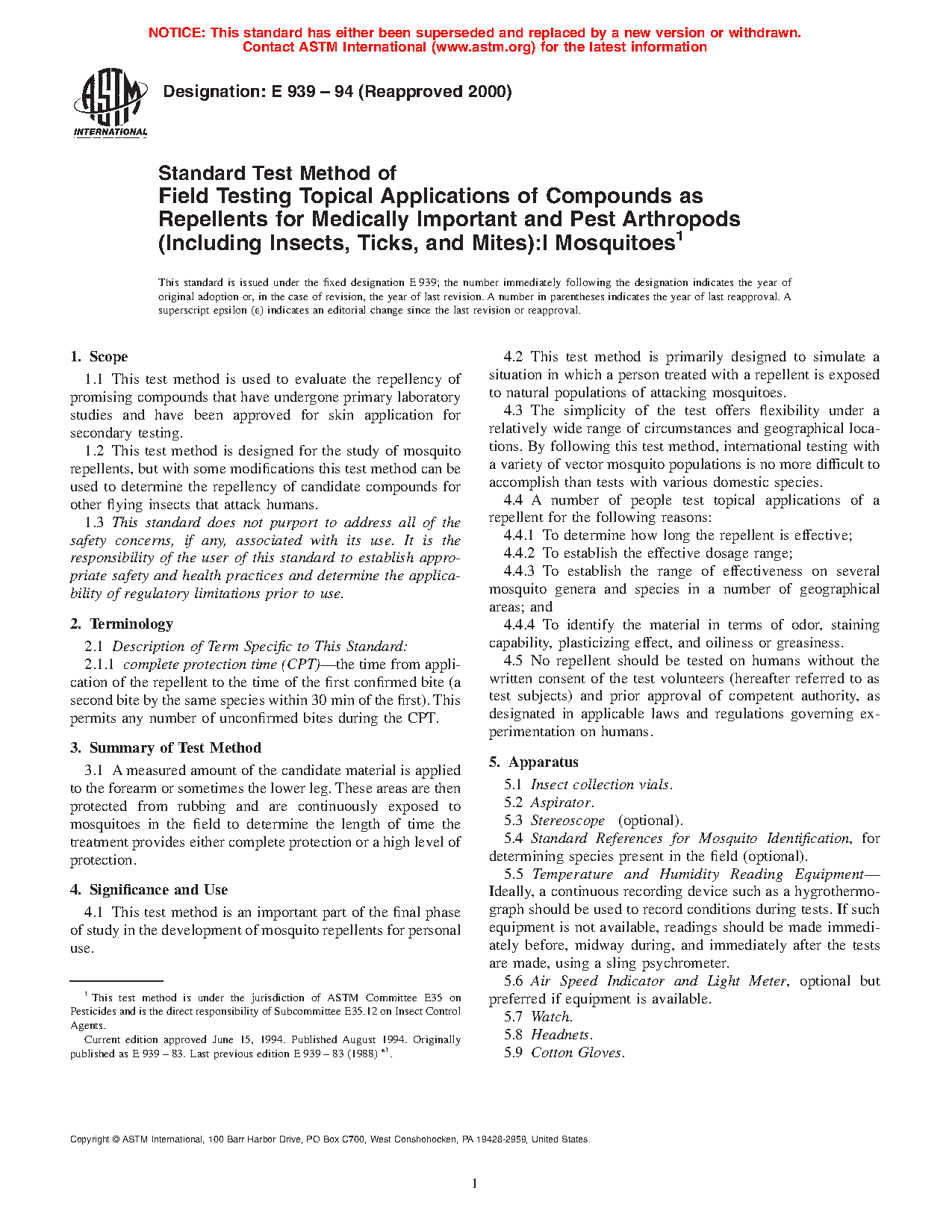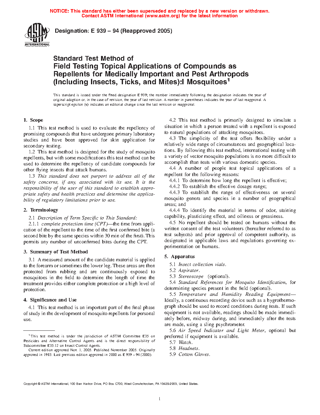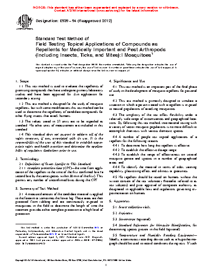 1.2 This test method is designed for the study of mosquito repellents, but with some modifications this test method can be used to determine the repellency of candidate compounds for other flying insects that attack humans.